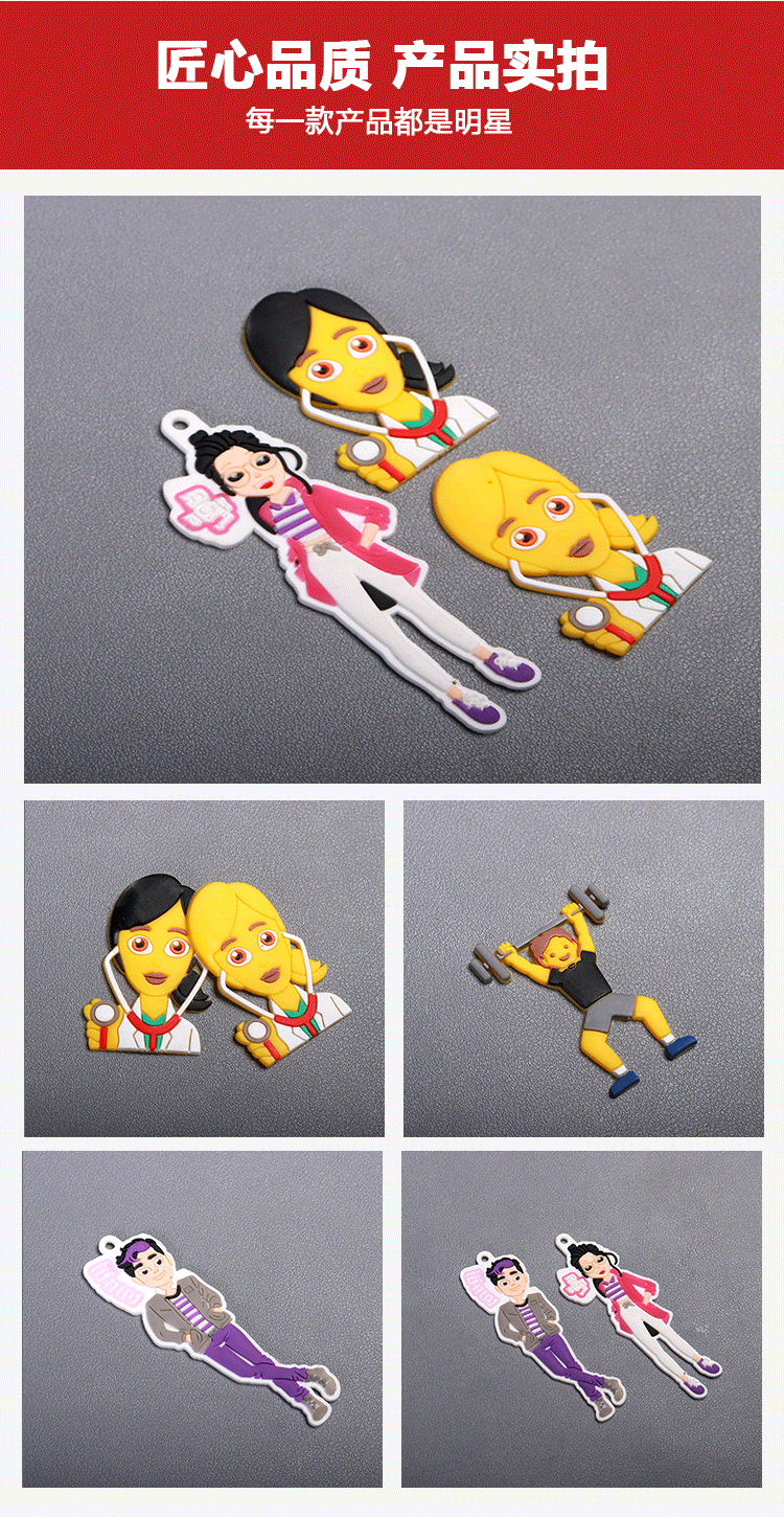 제조업체의 맞춤형 만화 캐릭터 PVC 플라스틱 라벨 의류 고무 스탬프 신발 및 모자 고무 라벨 가방 부드러운 고무 라벨