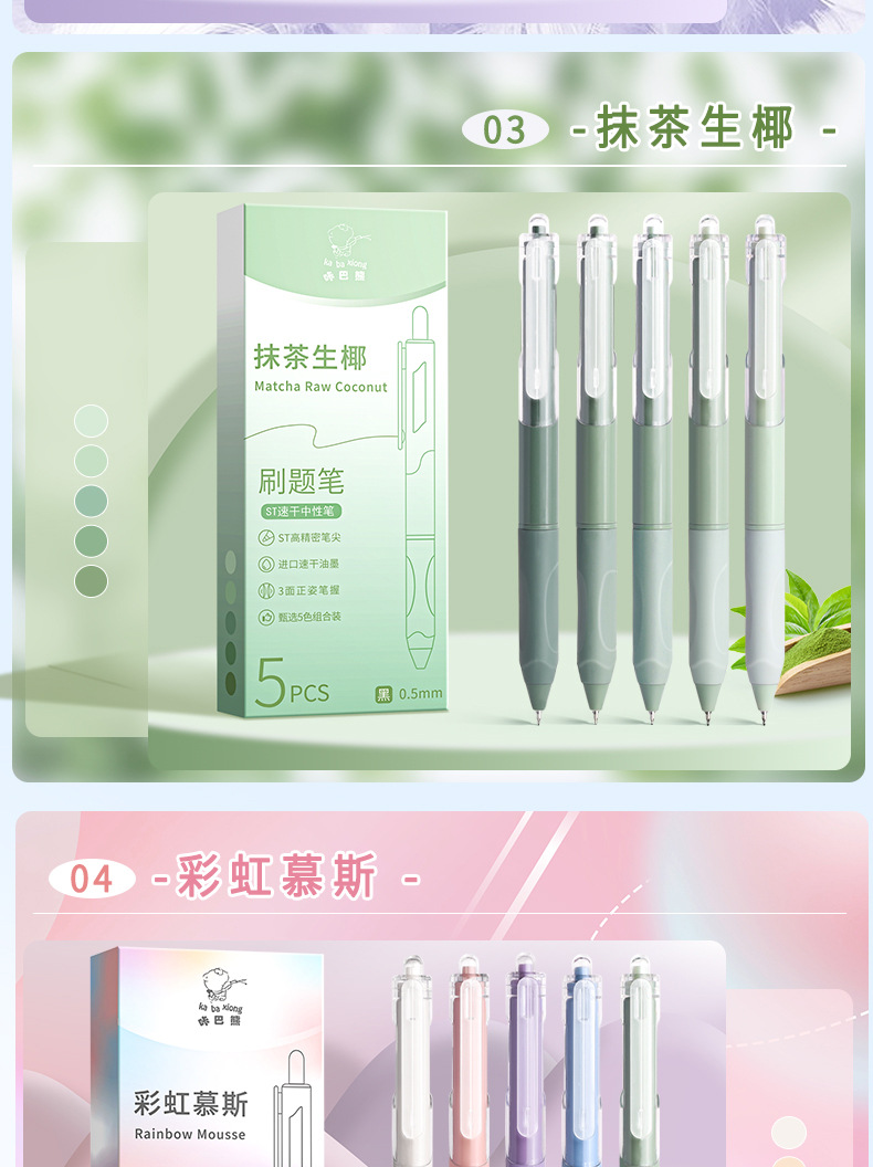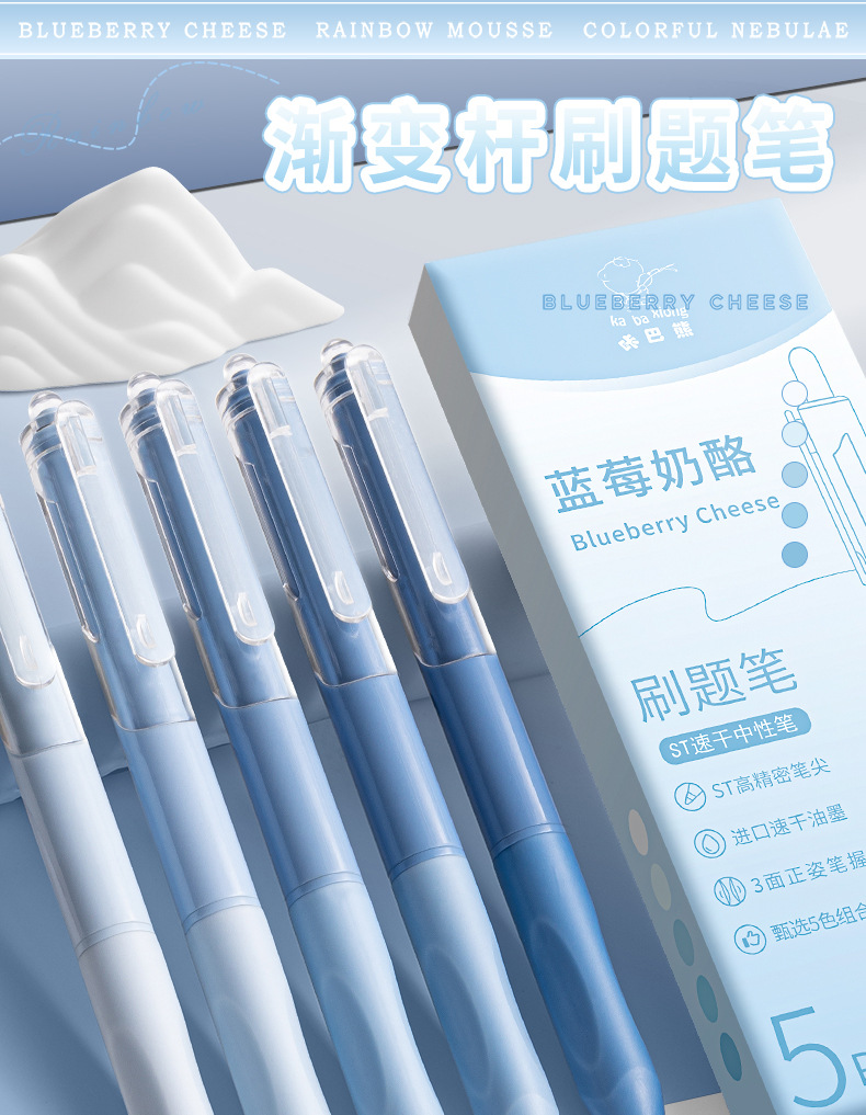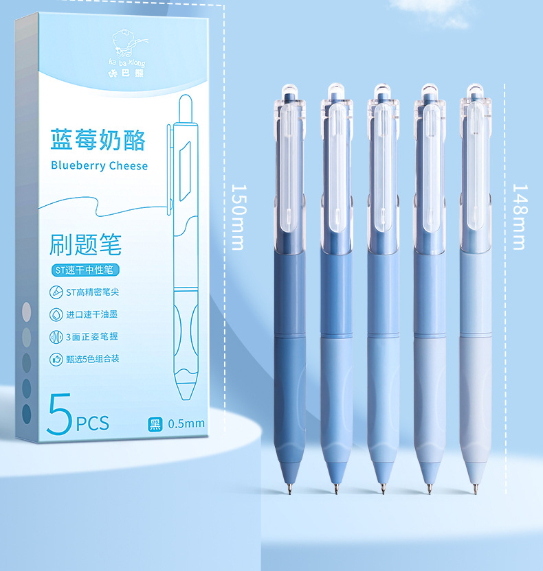 카바베어 젤펜 학생 시험 숙제 연습용 펜, 클릭식 속건성 서명펜, 인스 그라데이션 소프트 그립 검정펜