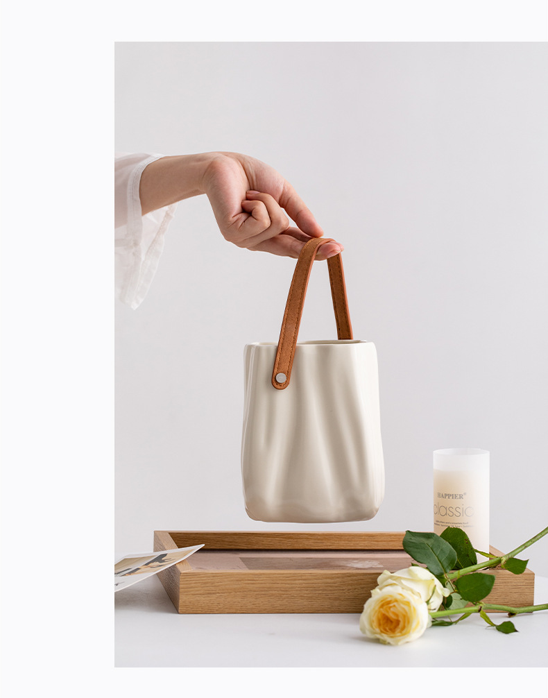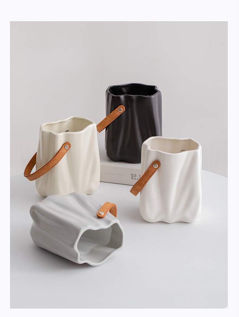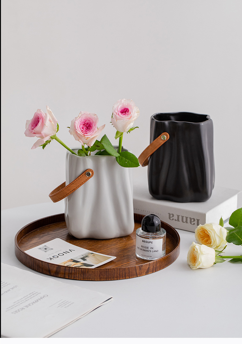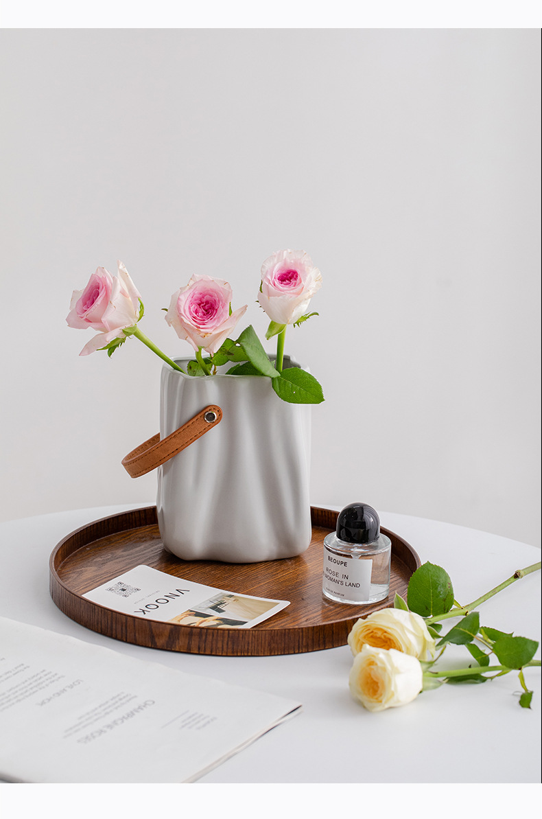 슈멘 크림 큰 입 세라믹 장식 꽃 말린 꽃 북유럽 꽃병 거실 꽃 배열 식탁 장식품 현대 꽃 도자기