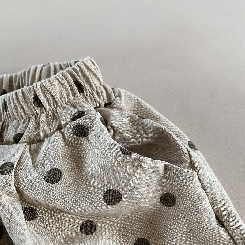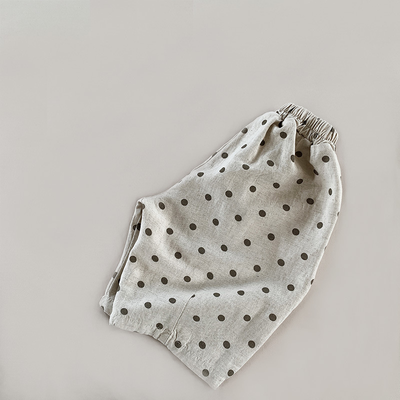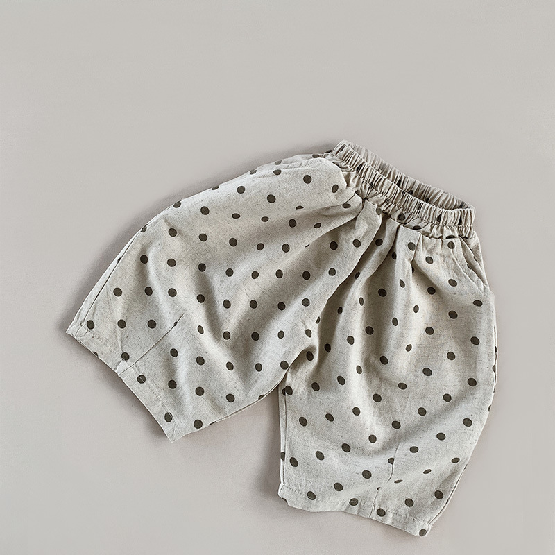 폴카 도트 코튼 린넨 반바지 2025 여름 소년 소녀 크롭 팬츠 아동용 루즈 와이드 팬츠 폴카 도트 한국 스타일 트렌디 아동복