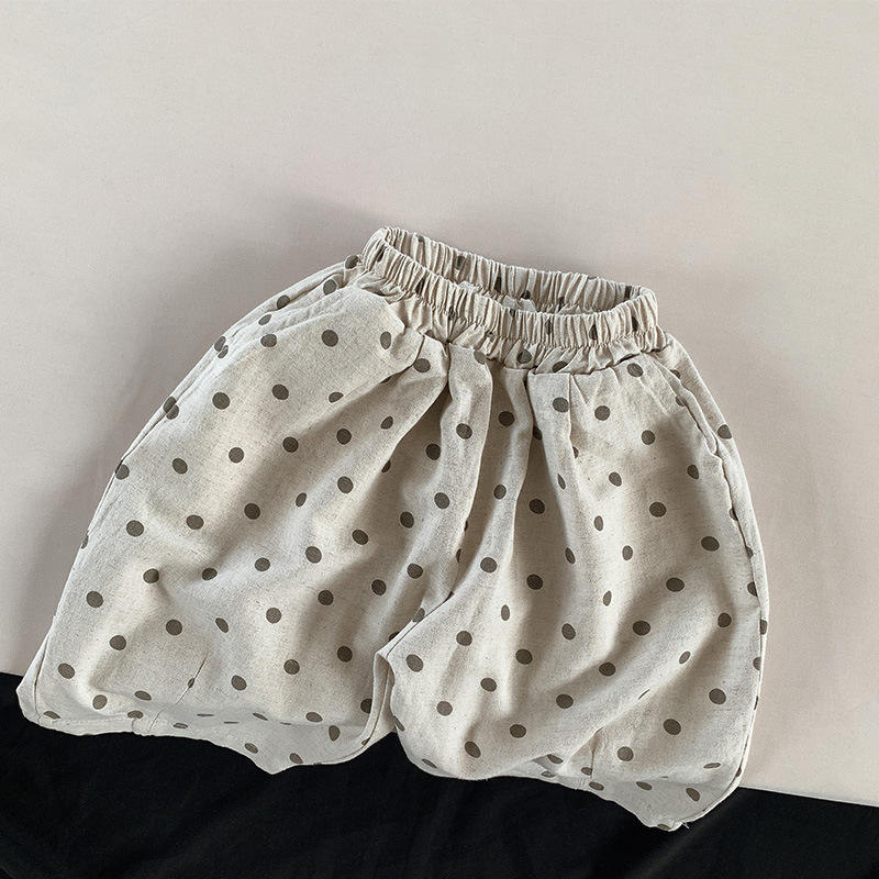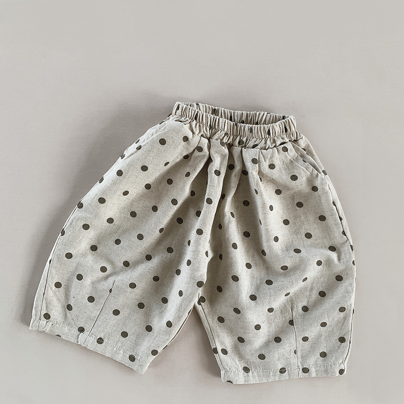 폴카 도트 코튼 린넨 반바지 2025 여름 소년 소녀 크롭 팬츠 아동용 루즈 와이드 팬츠 폴카 도트 한국 스타일 트렌디 아동복스토어 가기