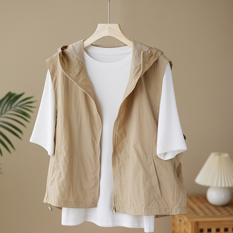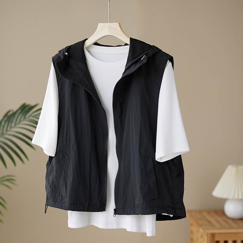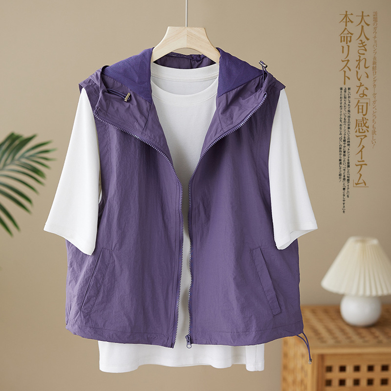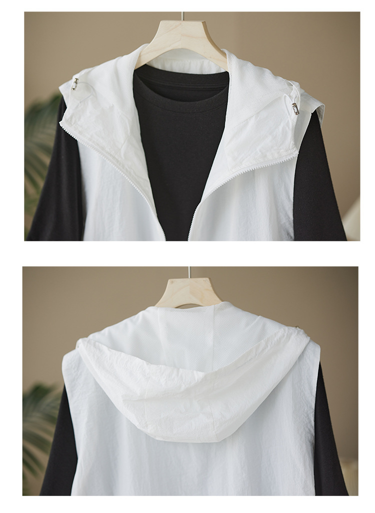 유행 모든 경기 조끼 여름 후드 지퍼 얇은 코트 메쉬 내부 조끼 러쉬 의류 자외선 차단제 의류 여성 의류스토어 가기