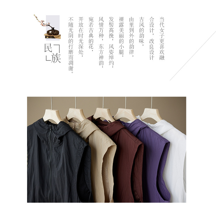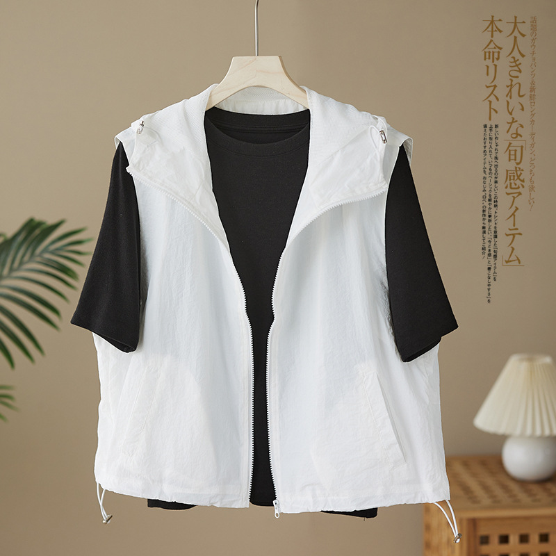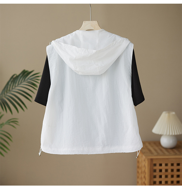 유행 모든 경기 조끼 여름 후드 지퍼 얇은 코트 메쉬 내부 조끼 러쉬 의류 자외선 차단제 의류 여성 의류