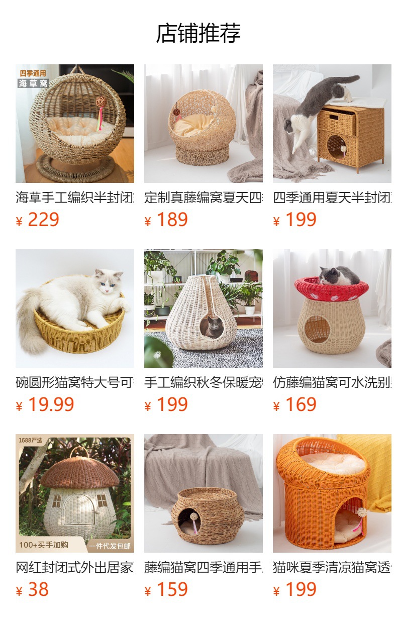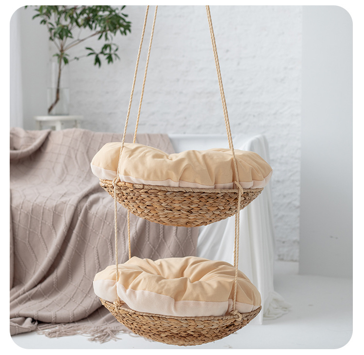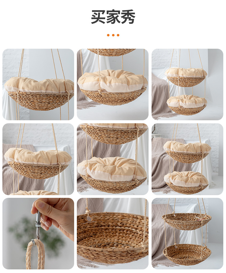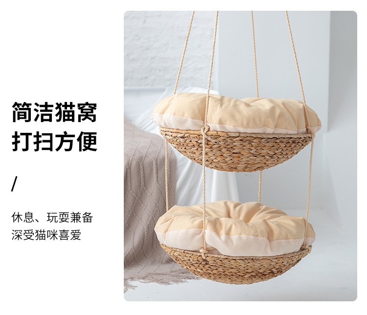 국경 간 뜨거운 판매 애완 동물 용품 빨판 등나무 고양이 해먹 사계절 보편적 인 밀짚 애완 동물 둥지 제거 가능하고 빨 수있는 고양이 둥지스토어 가기