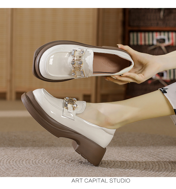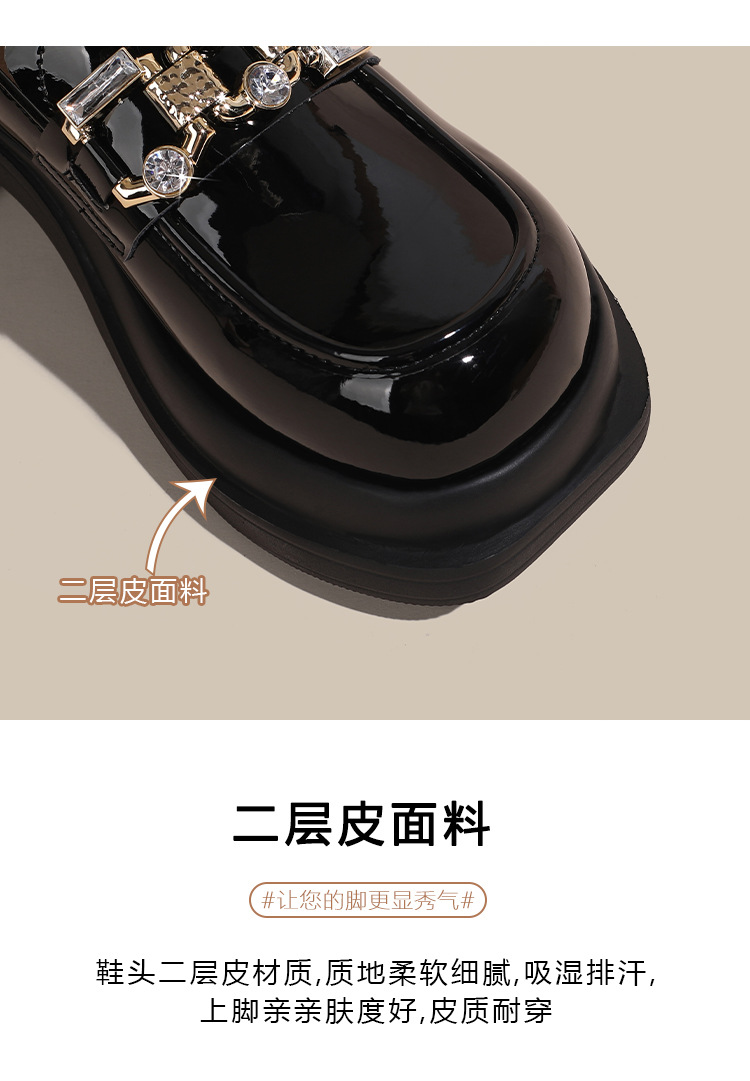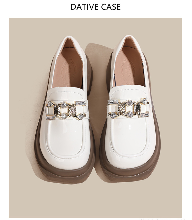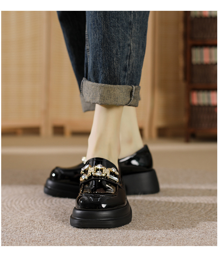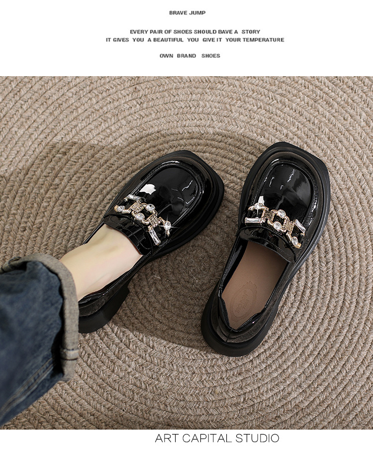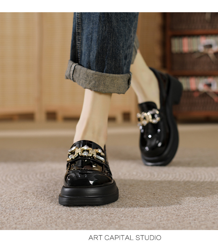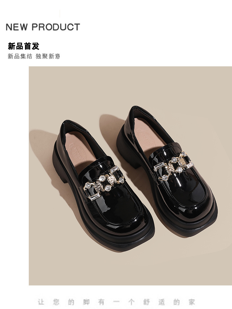 빈티지 로퍼 여성 2024 봄 새로운 두꺼운 유일한 가죽 신발 금속 라인 스톤 메리 제인 신발 여성