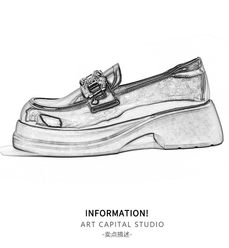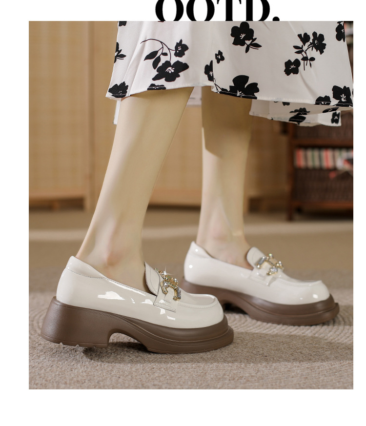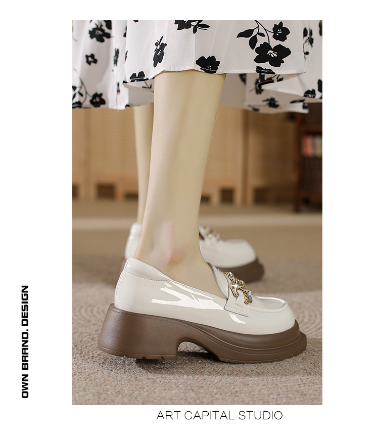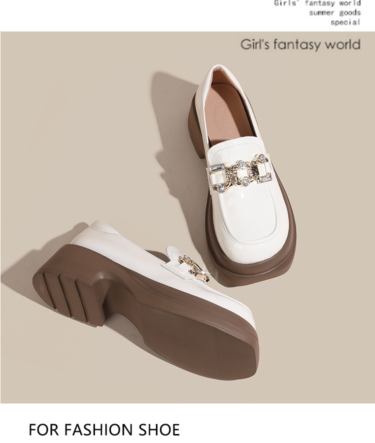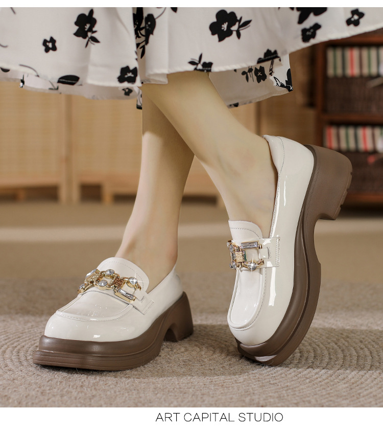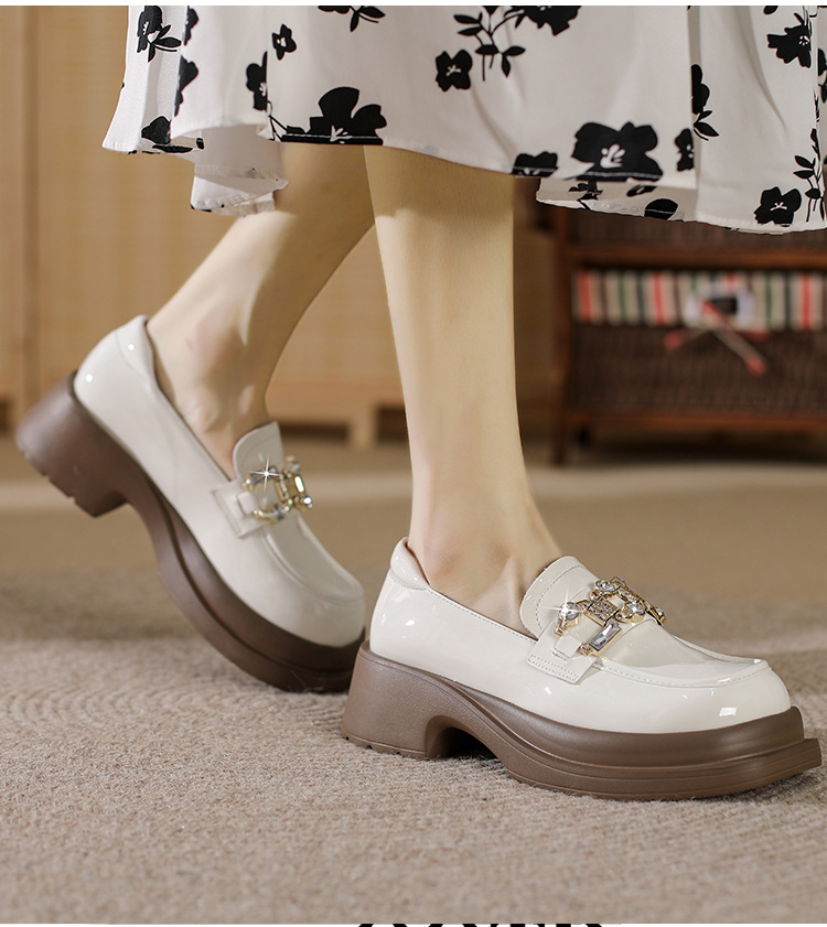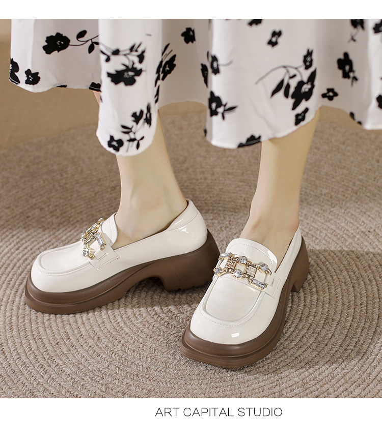 빈티지 로퍼 여성 2024 봄 새로운 두꺼운 유일한 가죽 신발 금속 라인 스톤 메리 제인 신발 여성