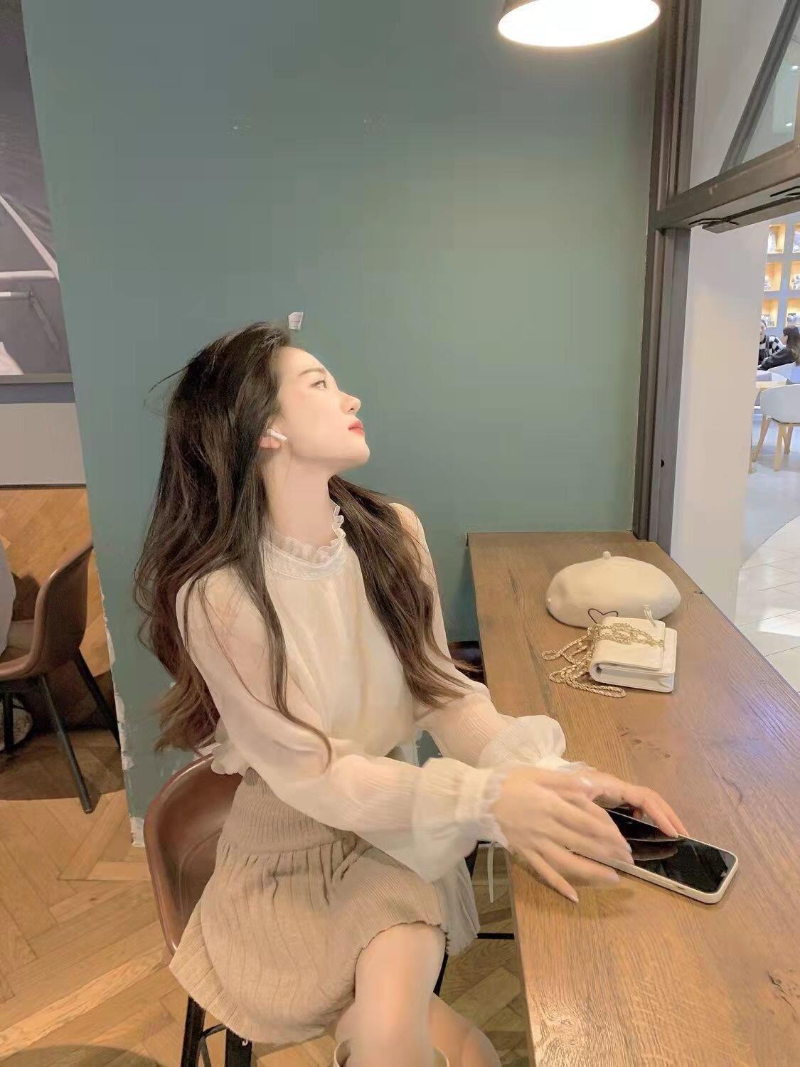 레이스 칼라 레이스베이스 셔츠 2023 봄과 가을 디자인 센스 메쉬 쉬폰 셔츠 탑 긴팔 내부 셔츠 여성스토어 가기