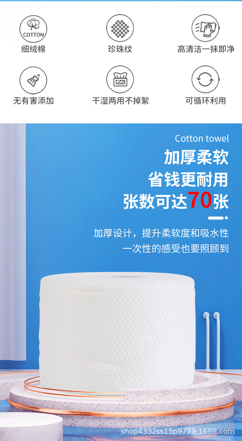 공장 두꺼운 진주 패턴 습식 및 건식 클렌징 타올 베이비 소프트 타올 일회용 롤 메이크업 리무버 페이스 타올스토어 가기