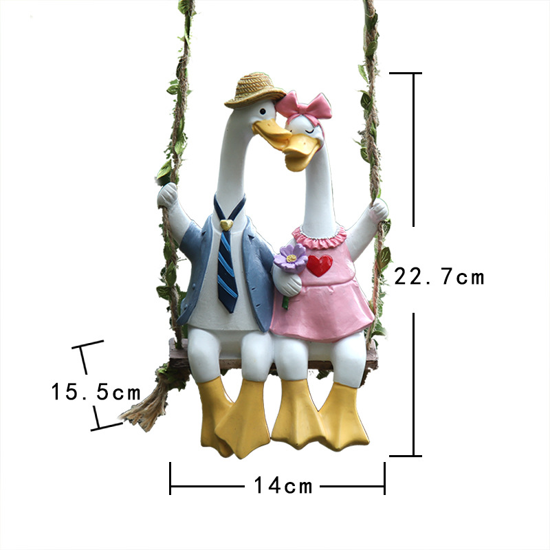 크리에이 티브 만화 커플 오리 매달려 발 펜던트 거실 홈 침실 장식 수지 공예 장식품 인형 선물