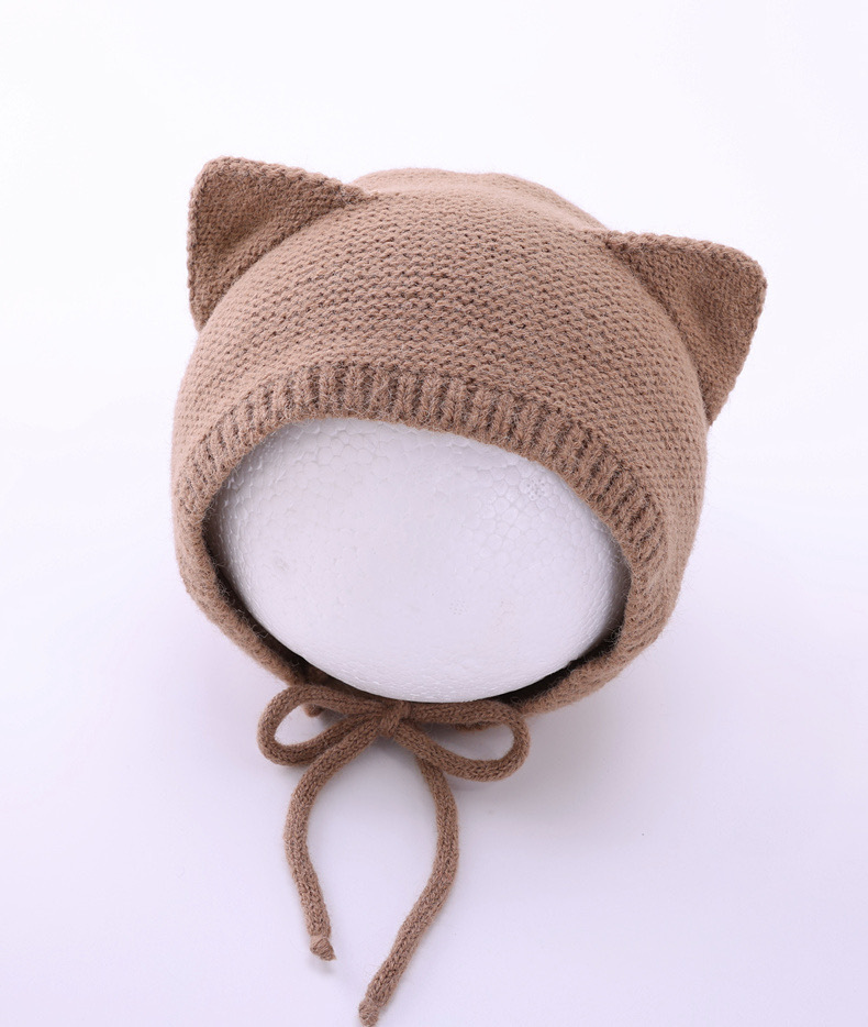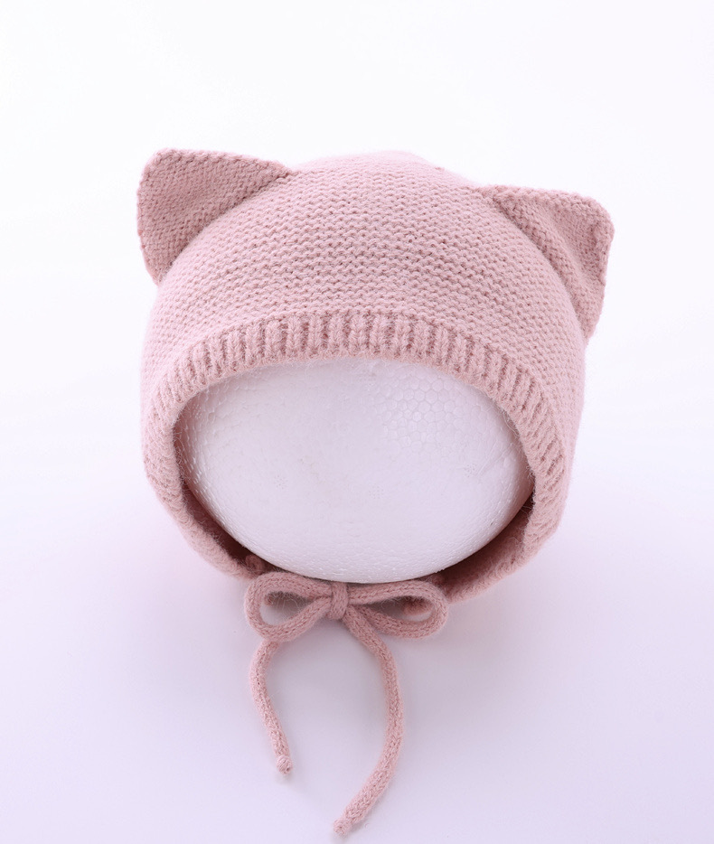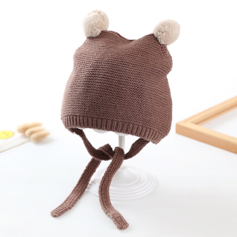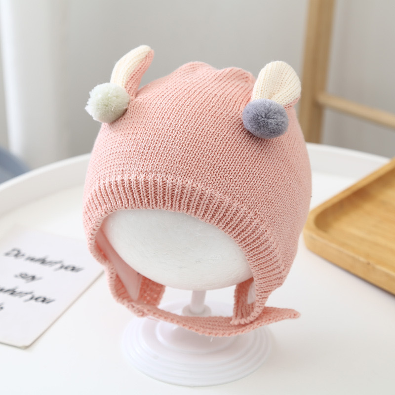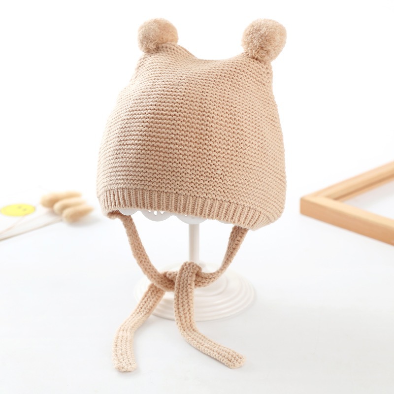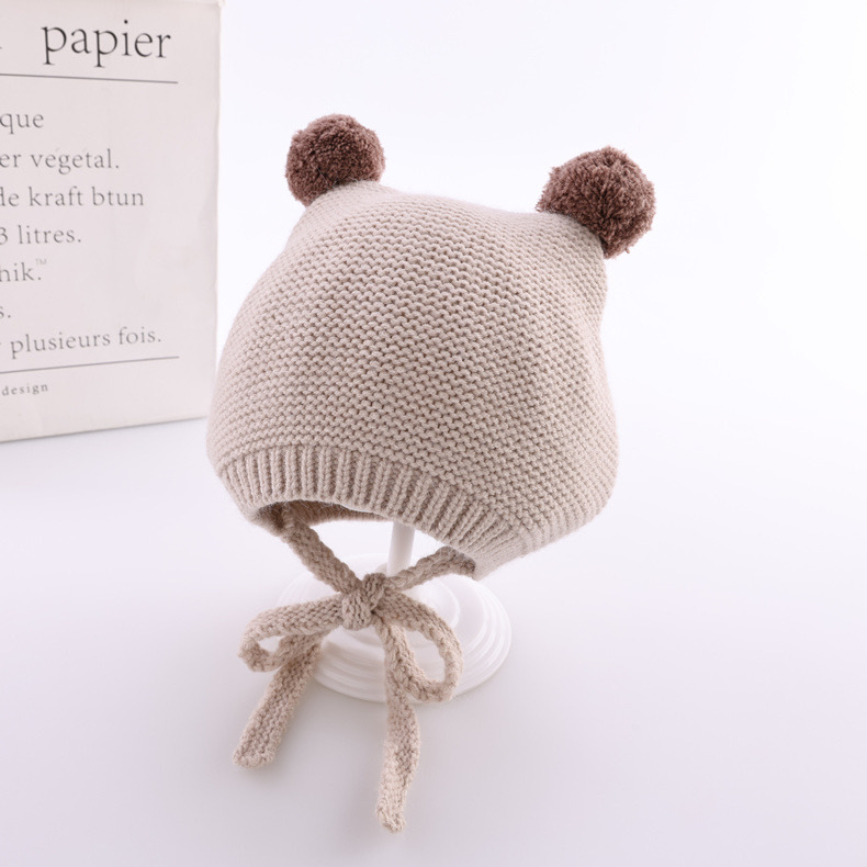 INS 어린이 단색 더블 볼 귀여운 니트 양모 모자 아기 귀 보호 가을과 겨울 따뜻한 모자 아기 모자 귀여운