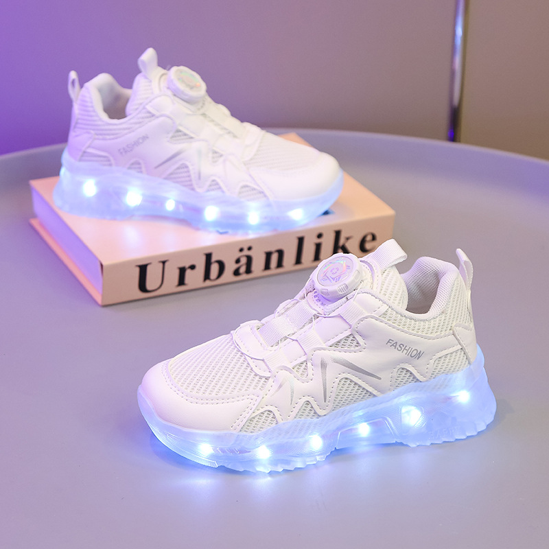 충전식 발광 신발 다채로운 조명 신발 회전 버튼 메쉬 흰색 신발 소년과 소녀 어린이 운동화 토레 신발스토어 가기