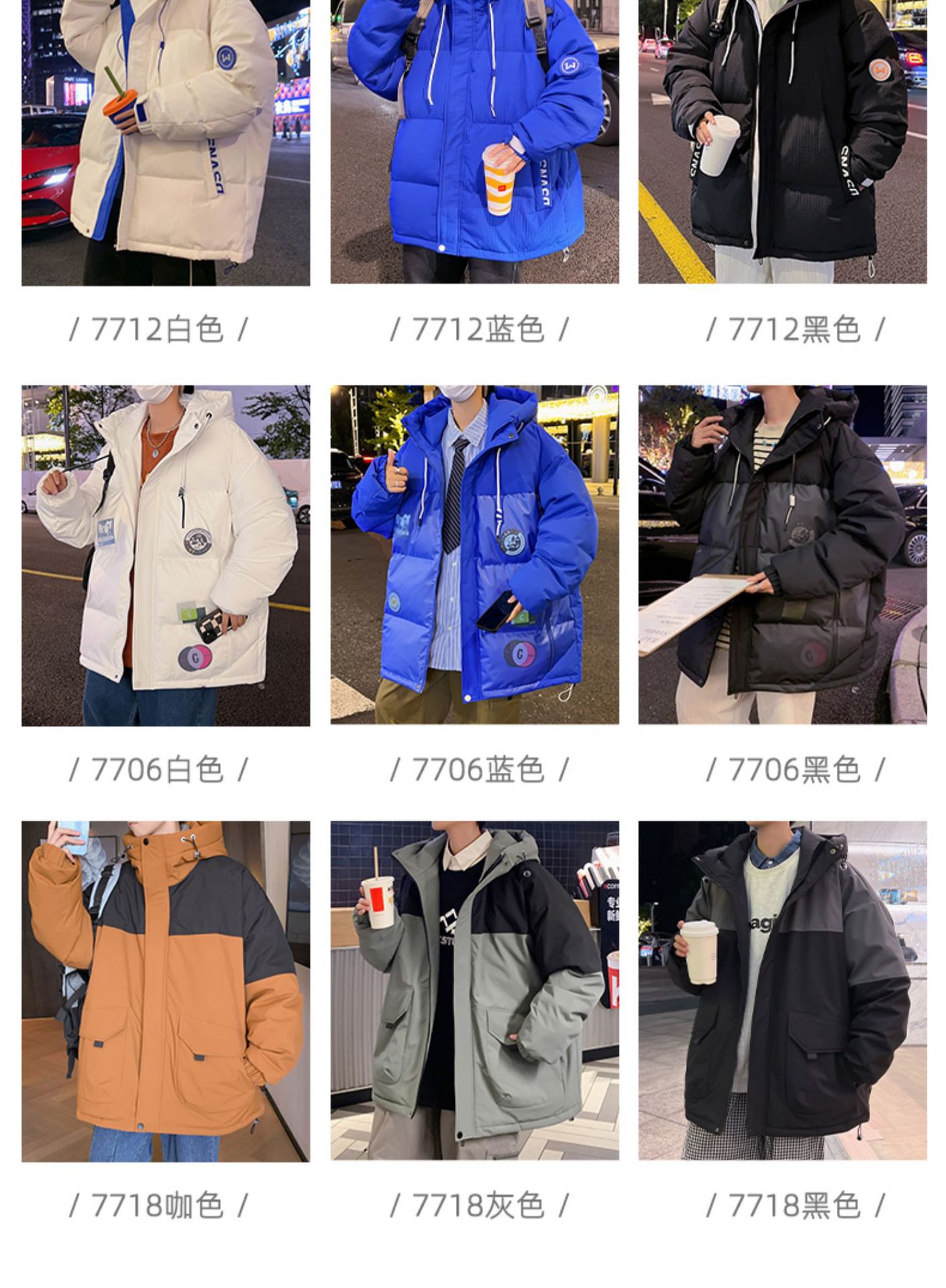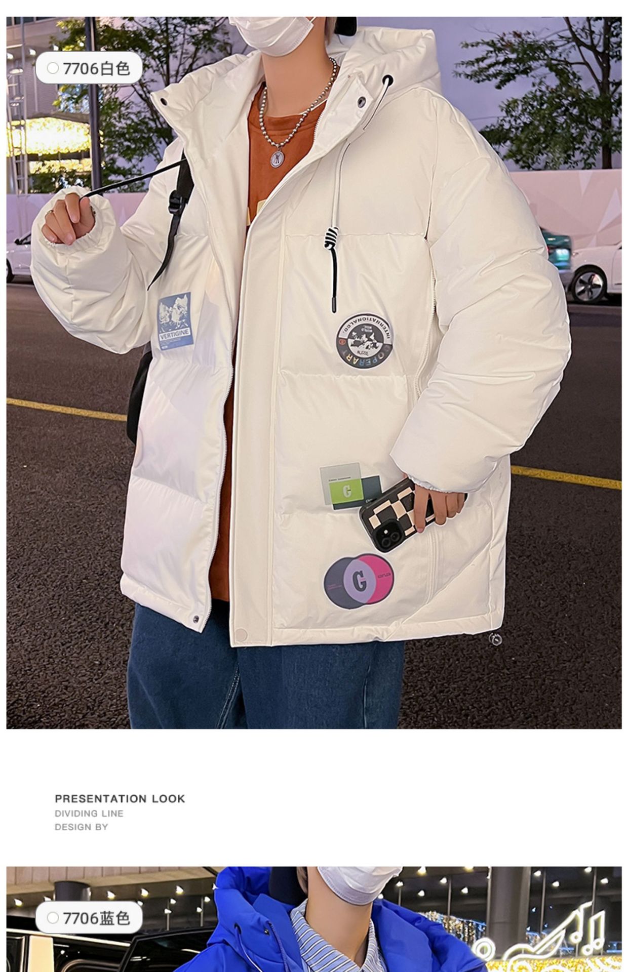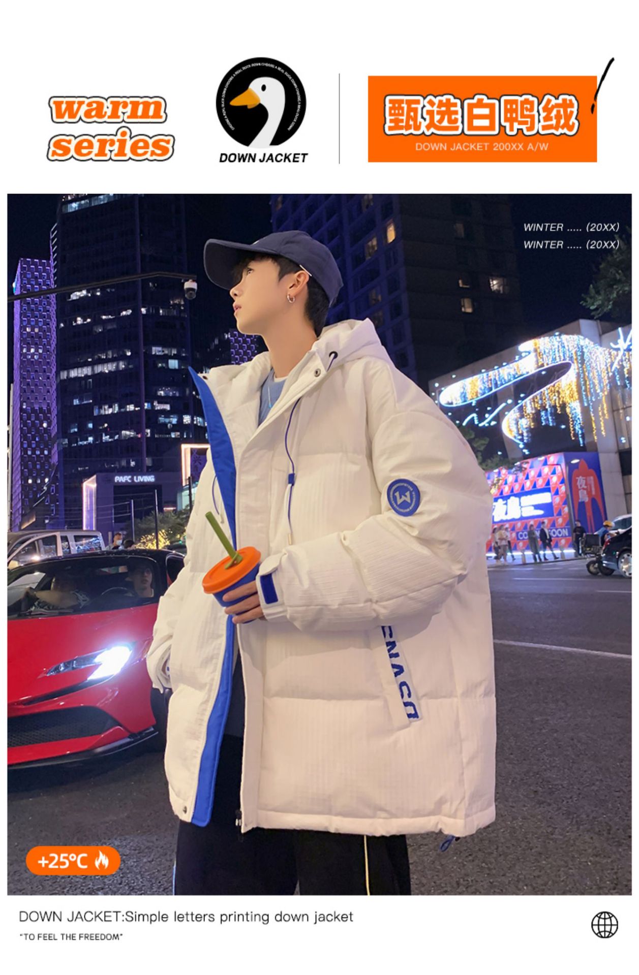 NASA 두꺼운 흰색 오리 다운 재킷 남자의 겨울 새로운 기모 겨울 따뜻한 경량 작업 원피스 오리 다운 재킷