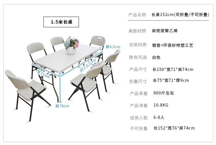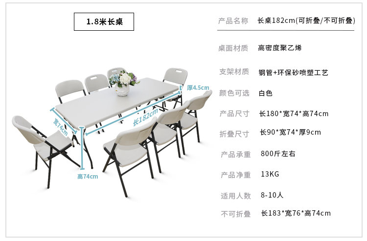 • 1.8 쌀 국수 다리 접힐 수 있습니다 8-10 명 굴 흰색
