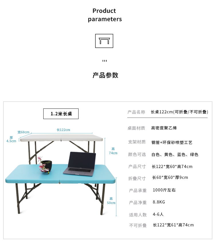 • 1.2 쌀 국수 다리를 접고 들어 올릴 수 있습니다 4-6 명 파란색