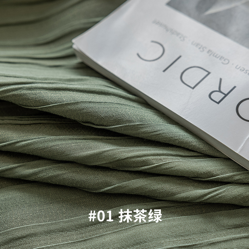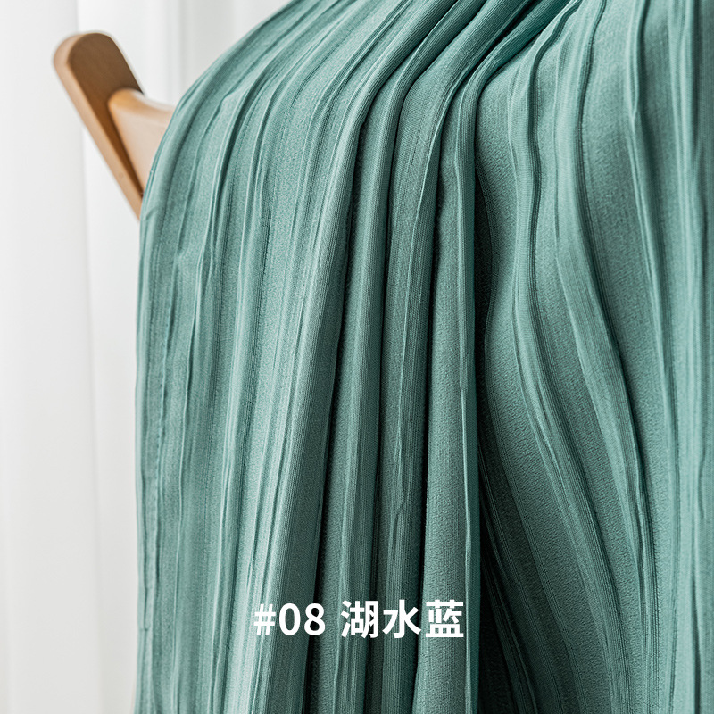 일본식 한국 주름 커튼 크레이프 말차 녹색 높은 정전 커튼 스타일 침실과 발코니를 위한 간단한 일반 커튼