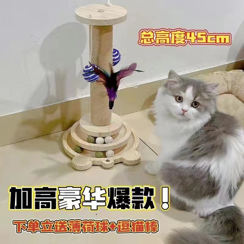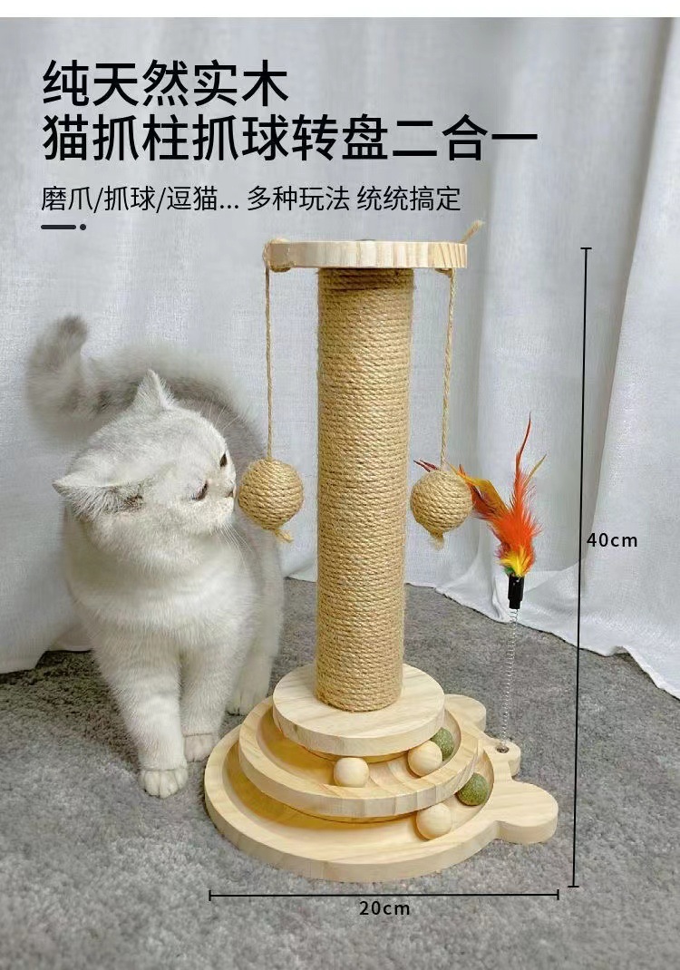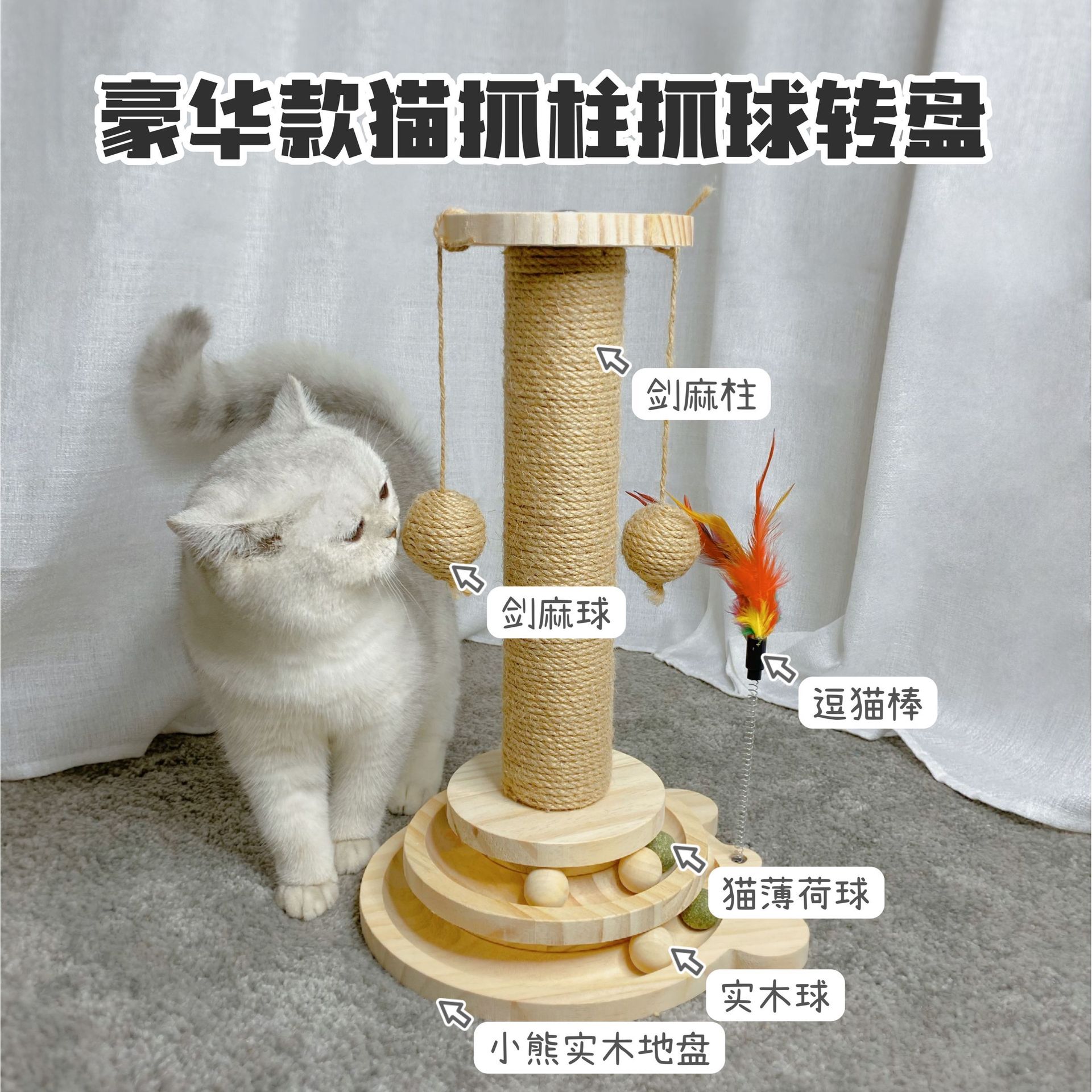 고양이 스크래치 보드 단단한 나무 턴테이블 발톱 그라인더 고양이 스크래치 기둥 사이잘삼 고양이 턴테이블 고양이 발톱 재미 고양이 장난감 고양이 등산 랙 통합