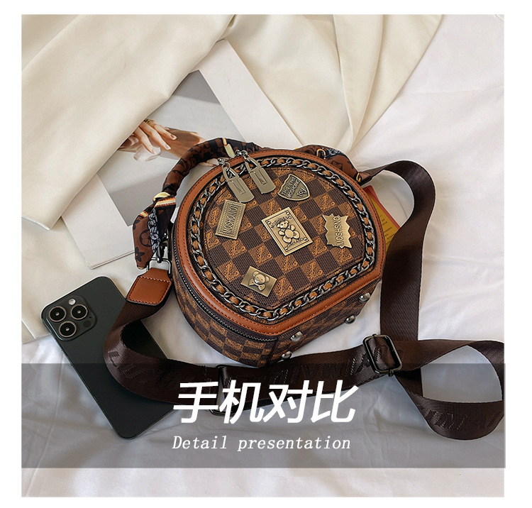 2023 새로운 크로스 보더 레트로 질감 라운드 케이크 가방 여성용 봄 패션 배지 실크 스카프 핸드백 모든 매치 크로스 바디 백스토어 가기