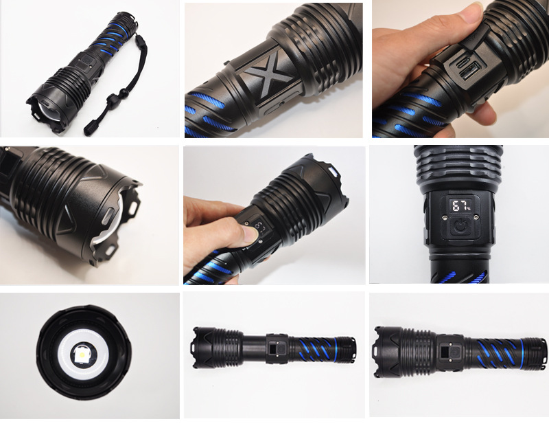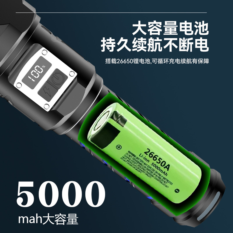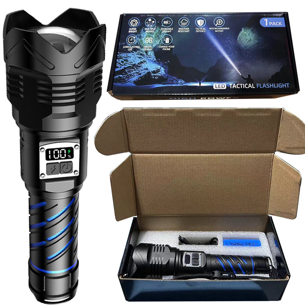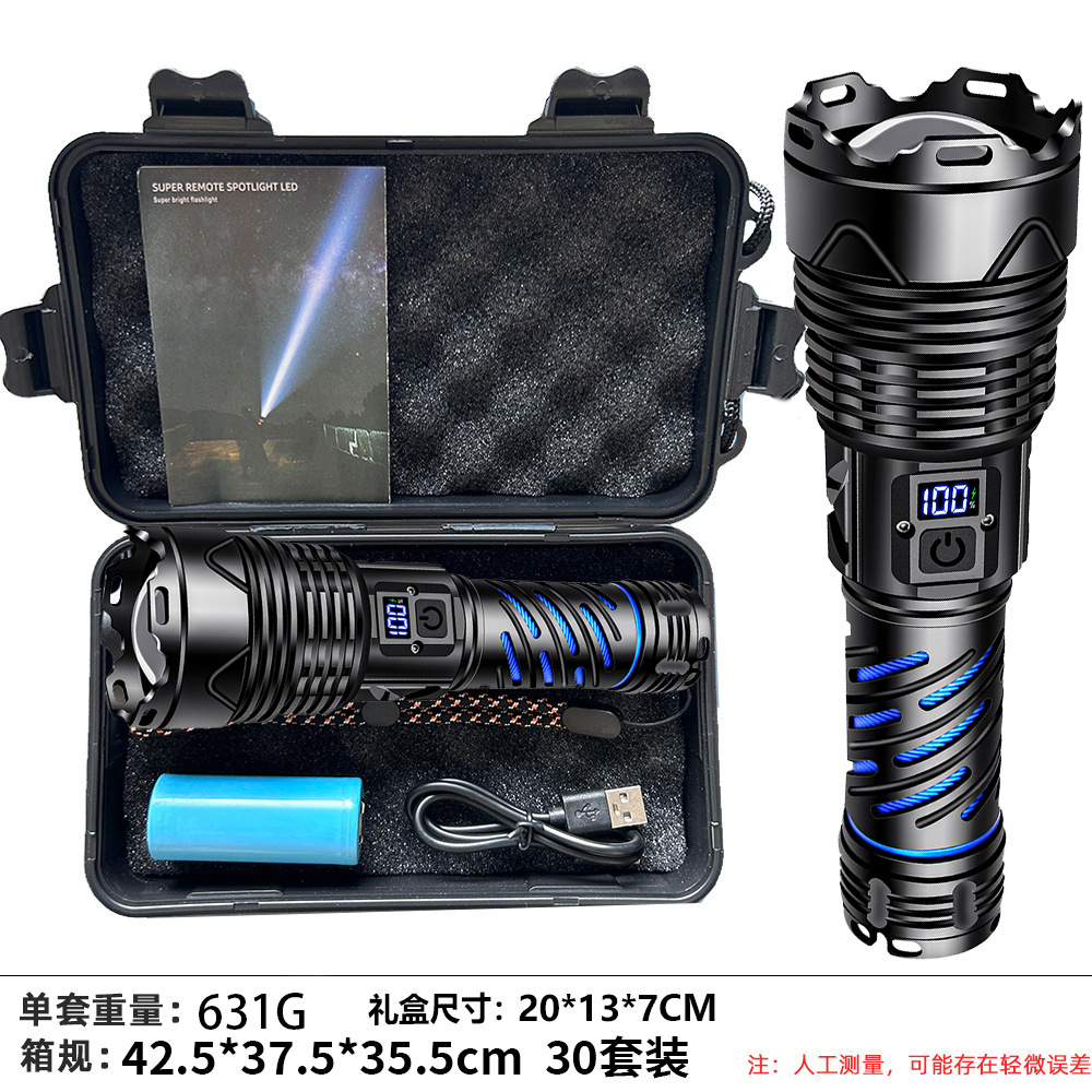 국경 간 매우 밝은 밝은 손전등 충전식 야외 장거리 가정용 충전식 알루미늄 합금 줌 디지털 디스플레이 밝은 손전등