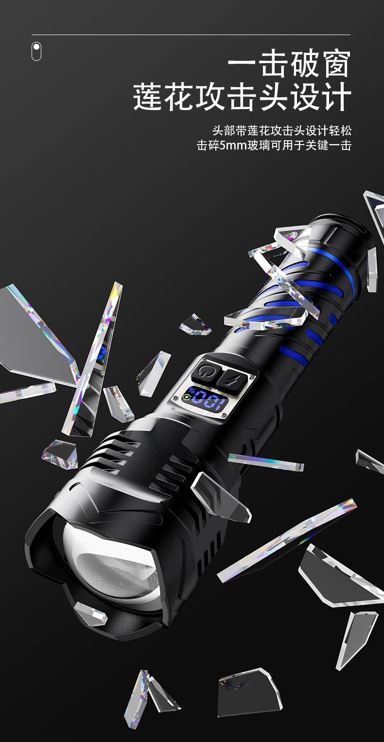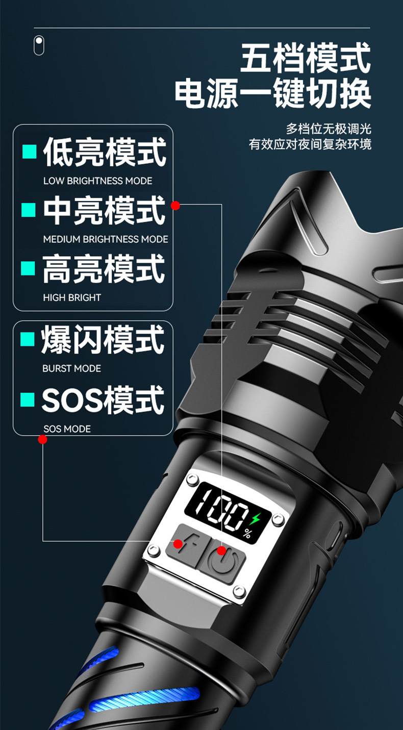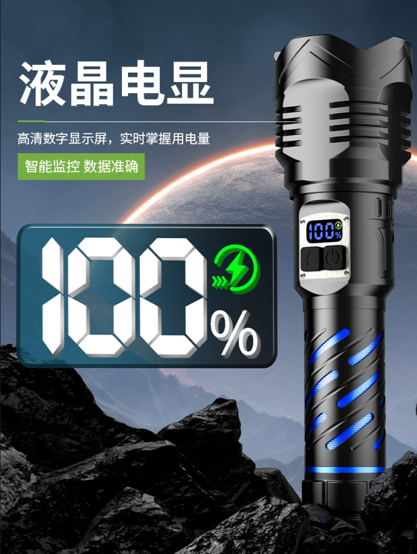 국경 간 매우 밝은 밝은 손전등 충전식 야외 장거리 가정용 충전식 알루미늄 합금 줌 디지털 디스플레이 밝은 손전등