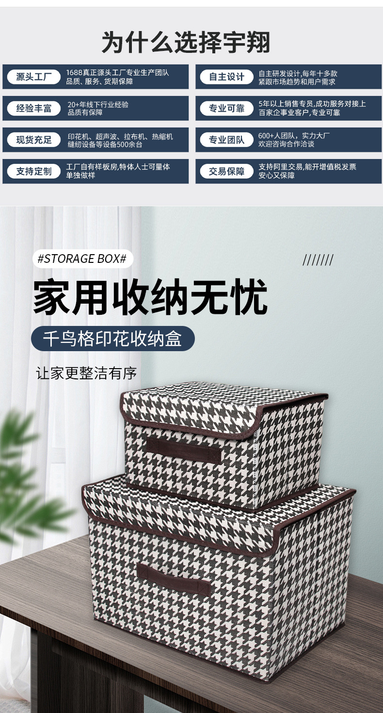 공장 도매 houndstooth 저장 상자 정렬 요약 의류 조합 대형 스몰 사이즈 세트 houndstooth 저장 상자스토어 가기