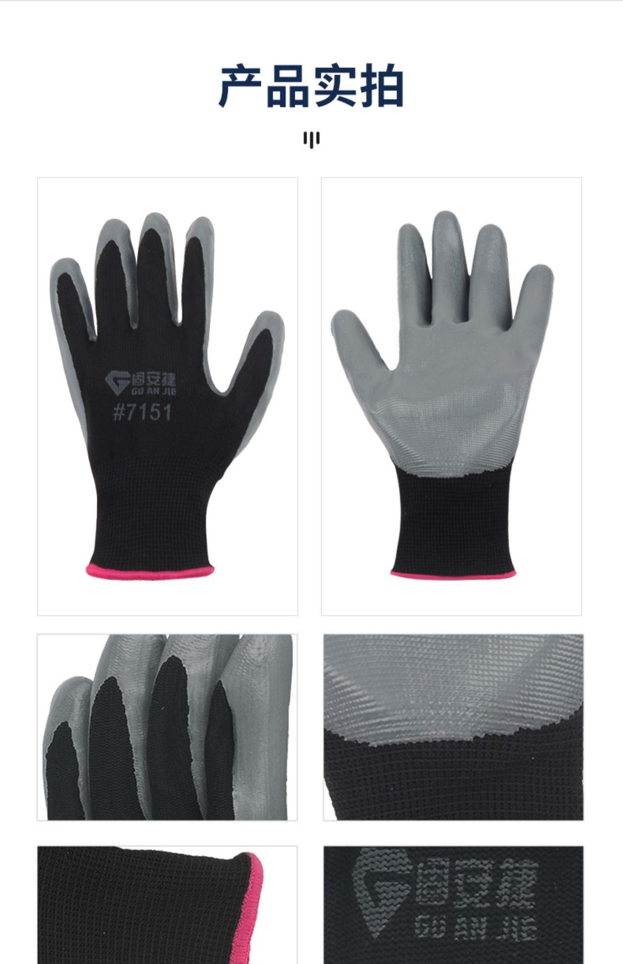 Junyu 7151 고무 장갑 내마모성 가정용 두꺼운 나일론 니트릴 도매 깨끗한 딥 플라스틱 장갑 내구성스토어 가기