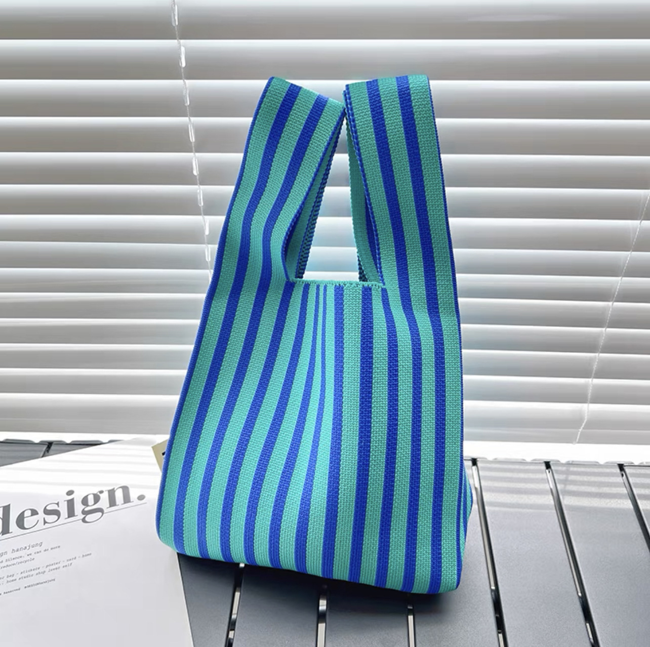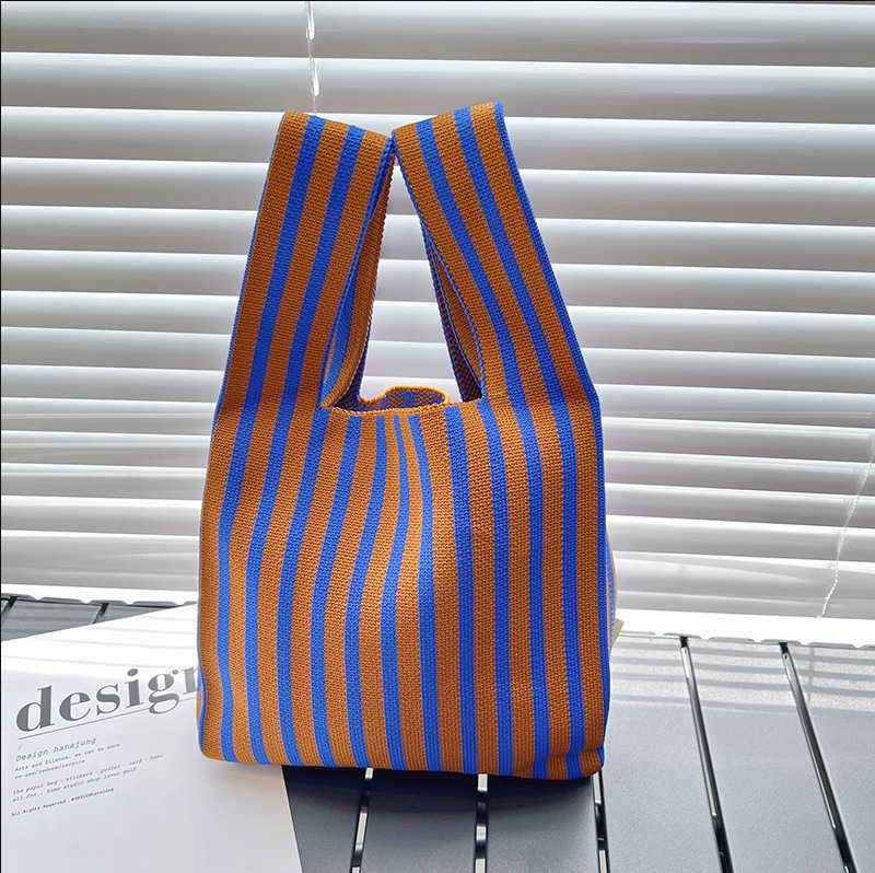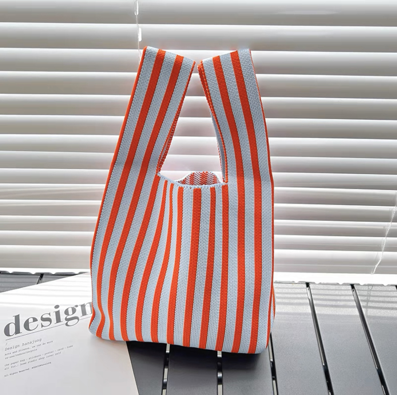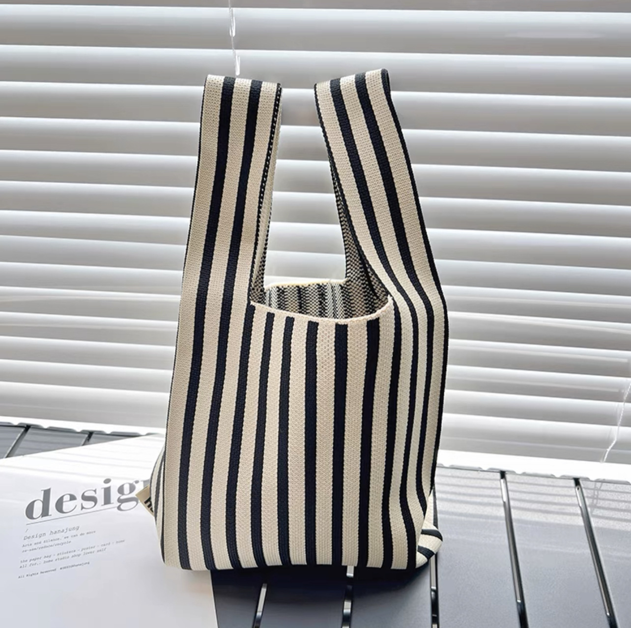 일본과 한국 스타일 심플 올매치 기하학적 스트라이프 니트 손목 가방 유행 소녀의 접이식 토트백 선물 가방스토어 가기