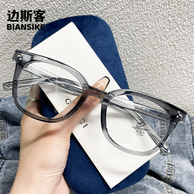 리벳 일반 일반 일반 안경 YC1201 에서 남성과 여성을위한 개인화 된 대형 프레임을위한 새로운 상자 안티 블루 안경