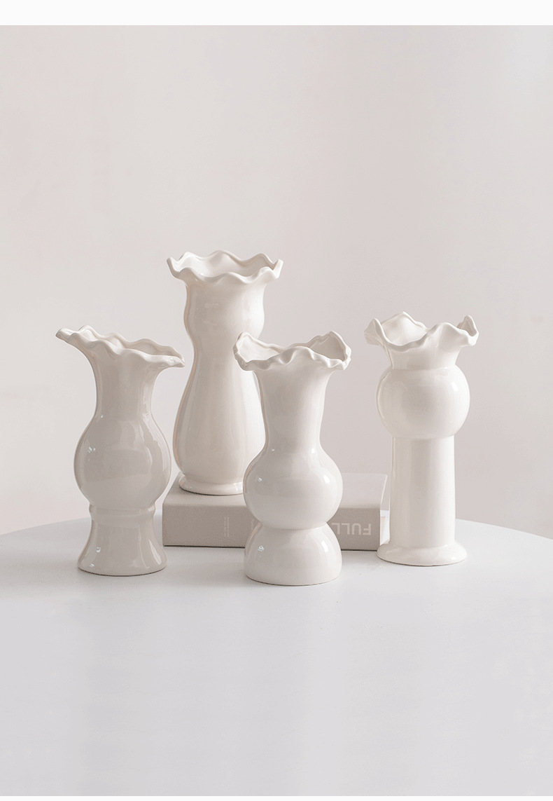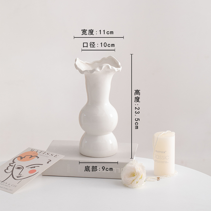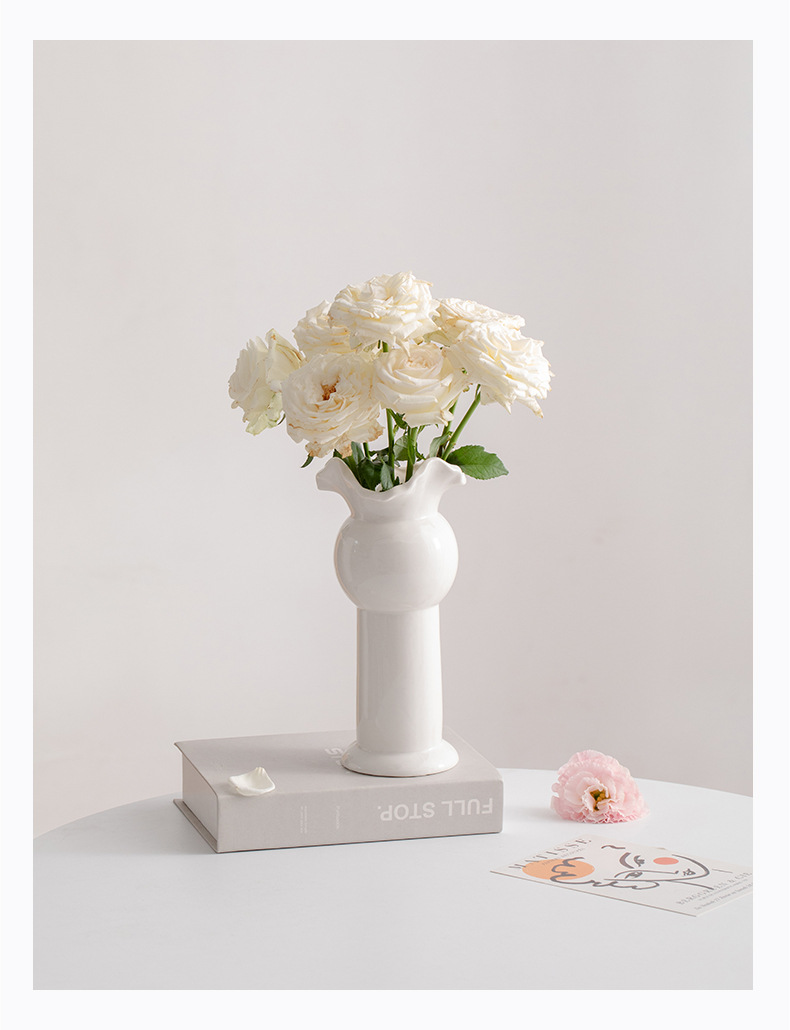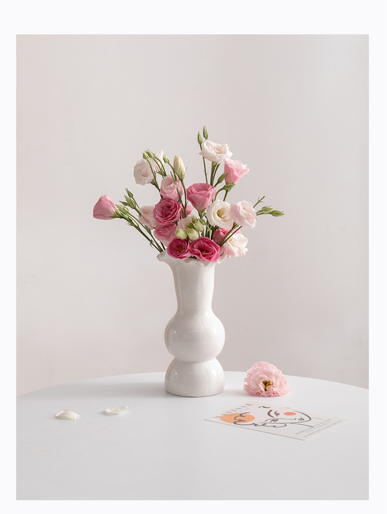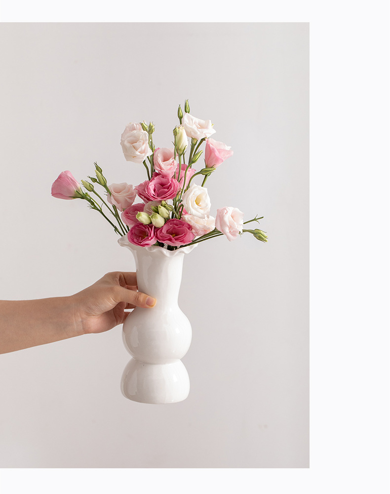 슈멘 화이트 북유럽 간단한 크리에이 티브 세라믹 장식 말린 꽃병 식탁 꽃 거실 꽃 장식품 꽃 세트