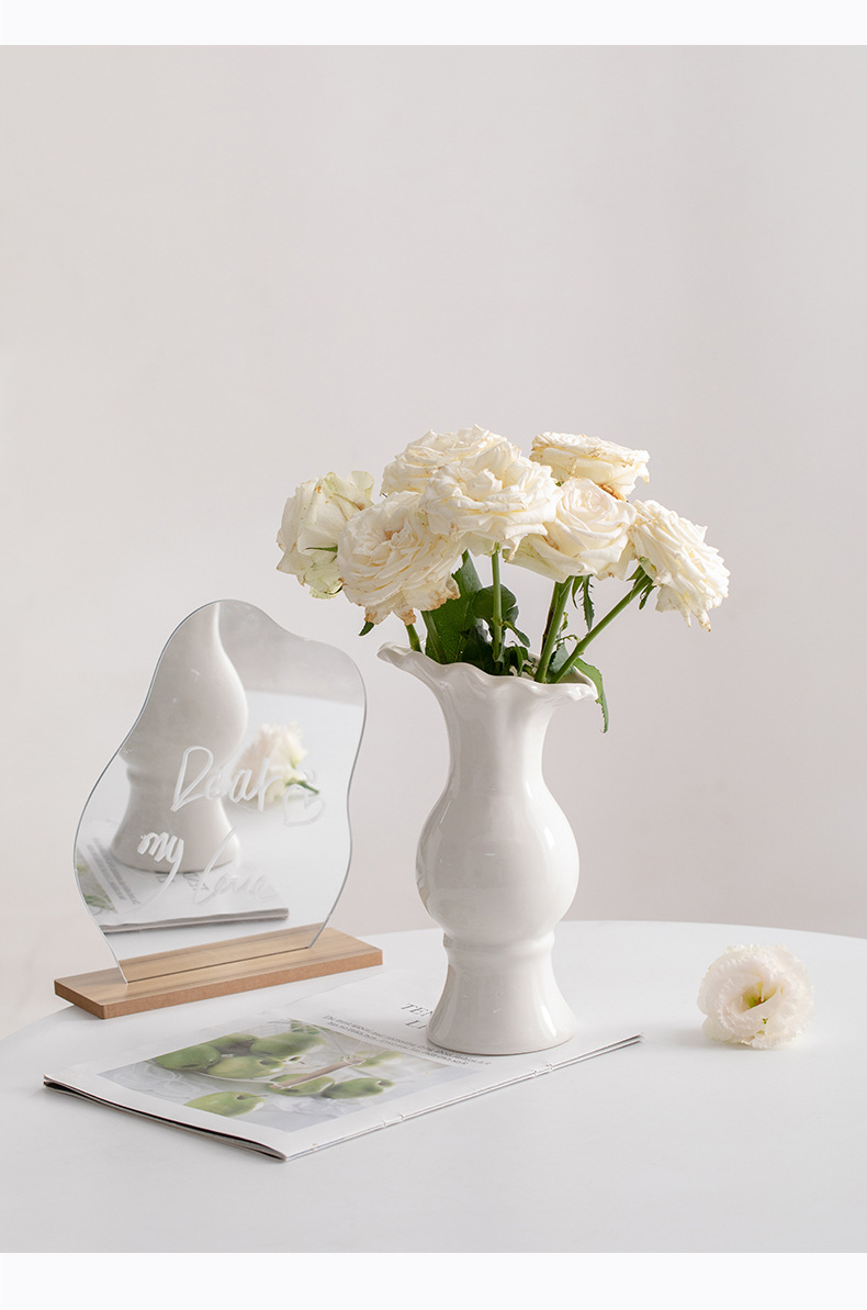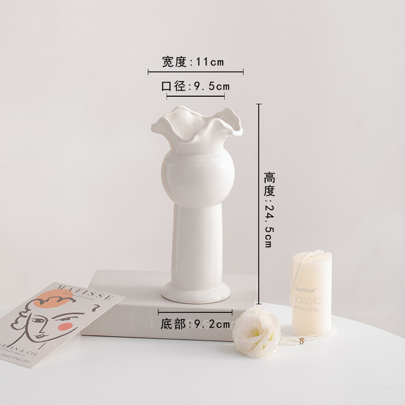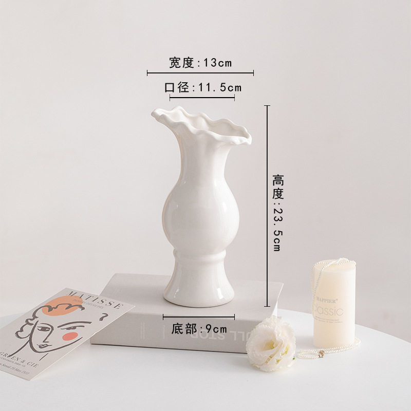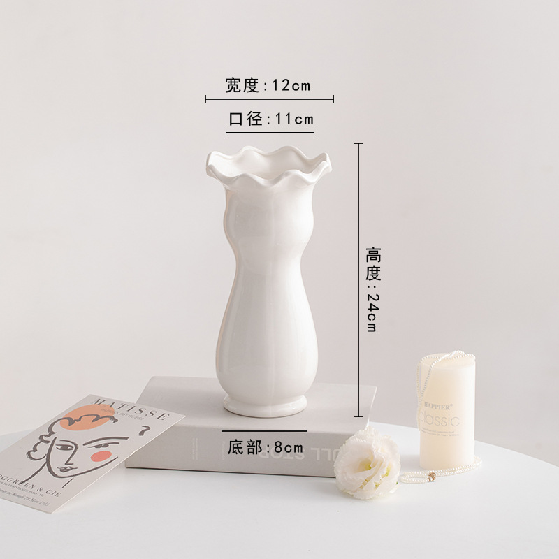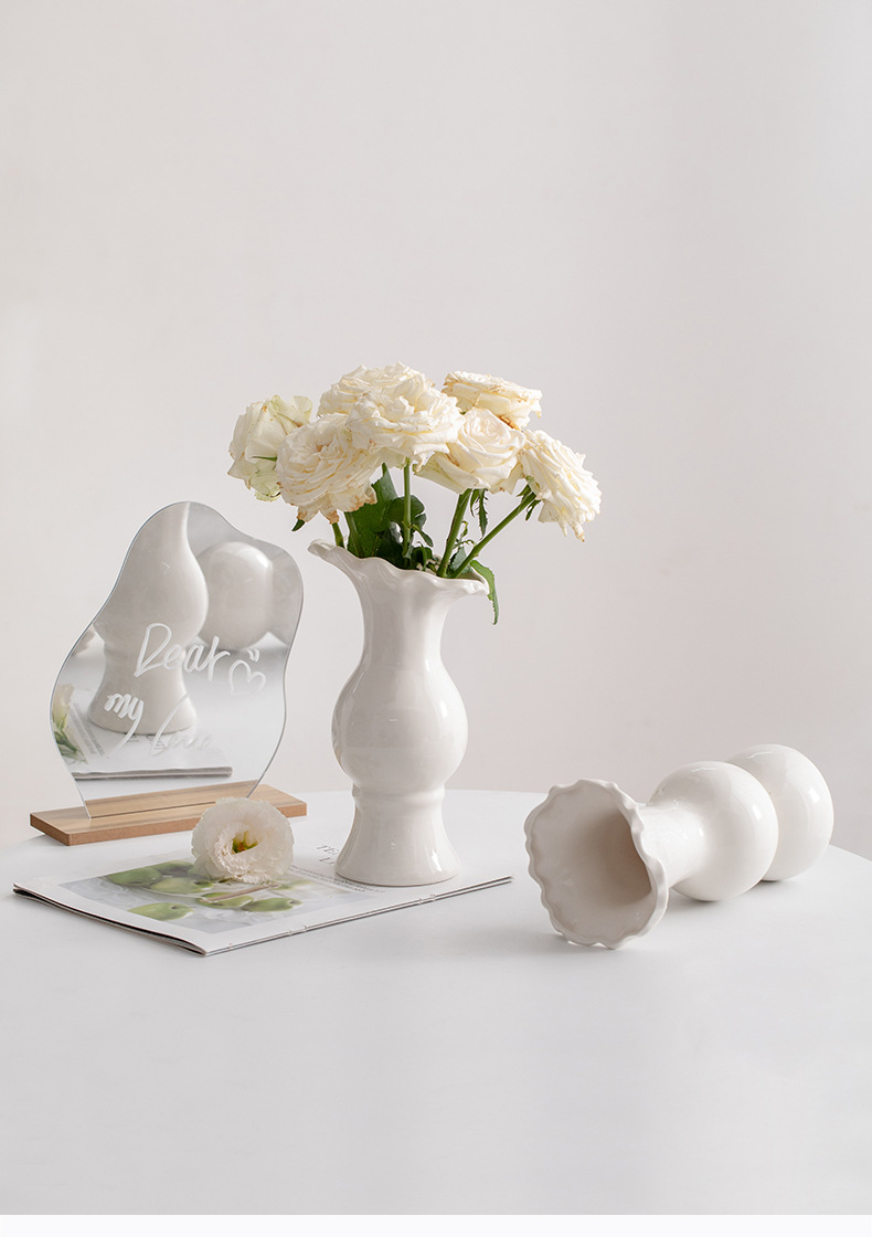 슈멘 화이트 북유럽 간단한 크리에이 티브 세라믹 장식 말린 꽃병 식탁 꽃 거실 꽃 장식품 꽃 세트