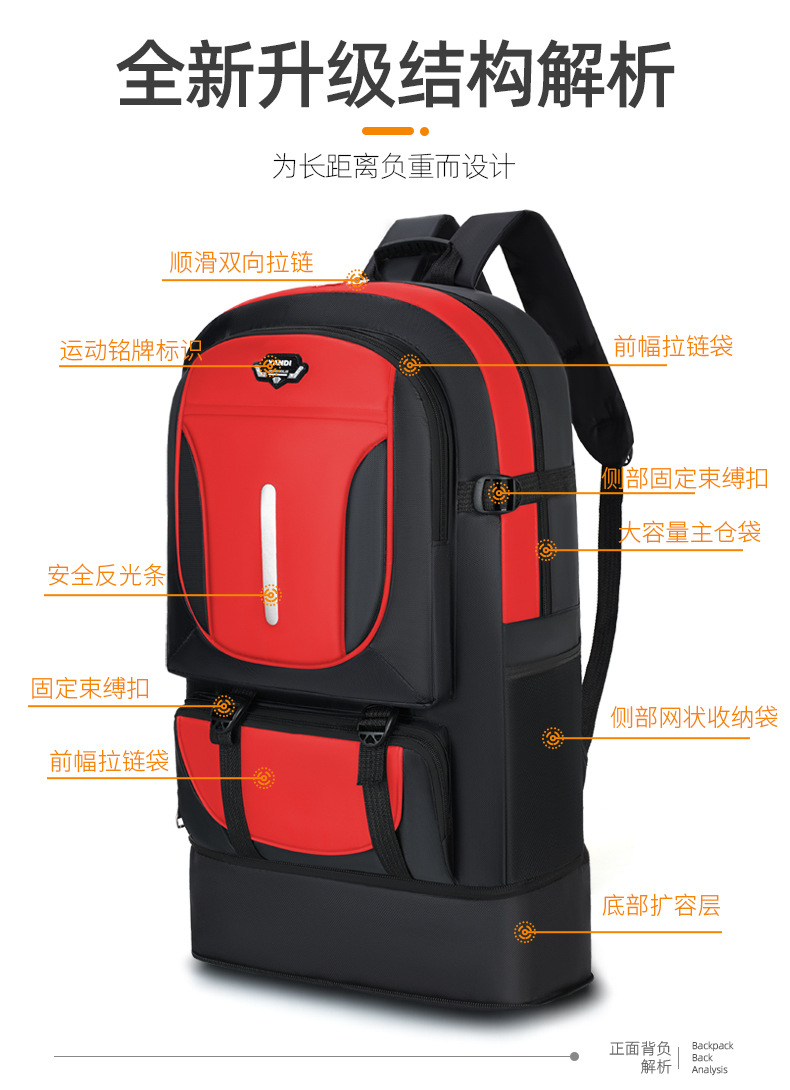 대용량 야외 배낭 남성 여행 비즈니스 배낭 간단한 캐주얼 컬러 블록 확장 가능한 등산 가방 도매