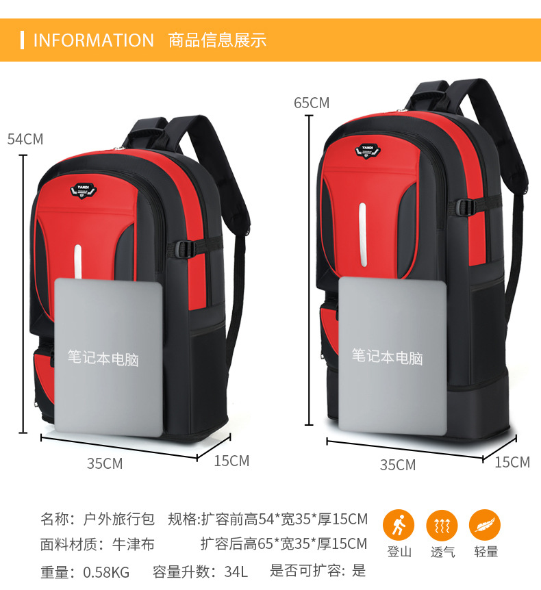 대용량 야외 배낭 남성 여행 비즈니스 배낭 간단한 캐주얼 컬러 블록 확장 가능한 등산 가방 도매스토어 가기