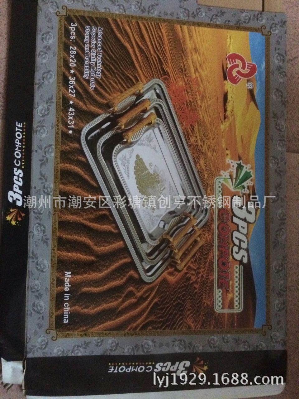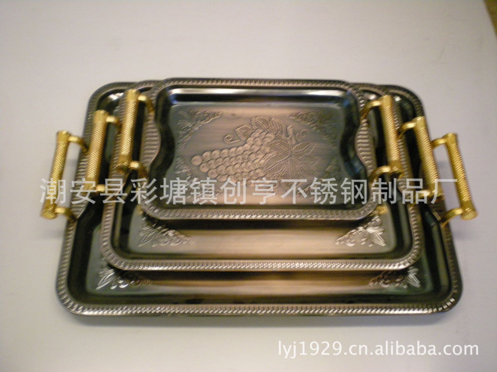 供应特价不锈钢三件套方盘、托盘(带手柄)