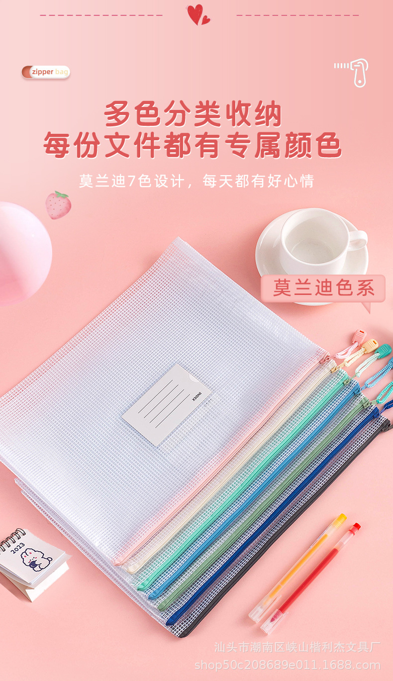 모란디 그리드 지퍼 가방 방수 사무실 정보 가방 학생 시험 용지 보관 가방 두꺼운 A4 파일 가방 인쇄스토어 가기