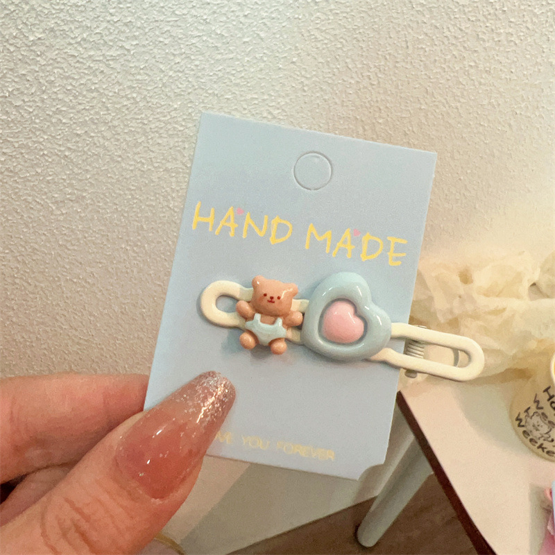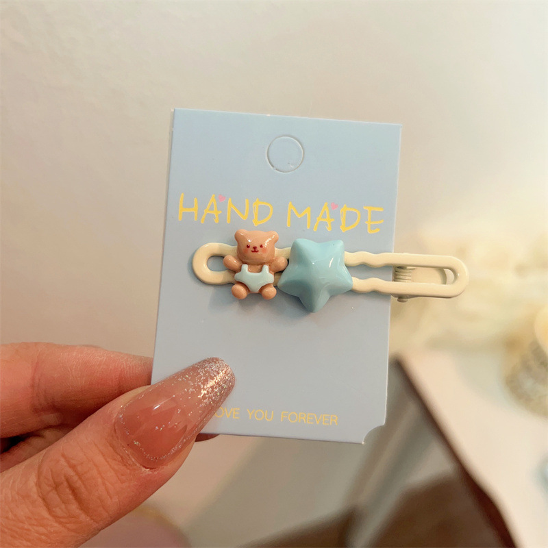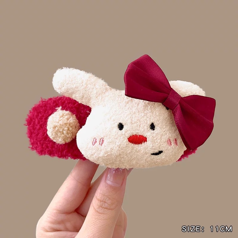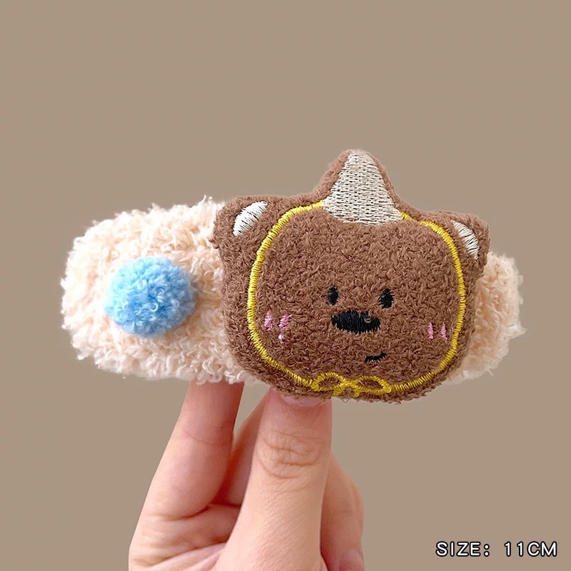 가을 겨울 귀여운 곰돌이 플러시 머리핀 대형 털 머리핀 소녀 옆머리 클립 작은 신선한 만화 헤어 액세서리