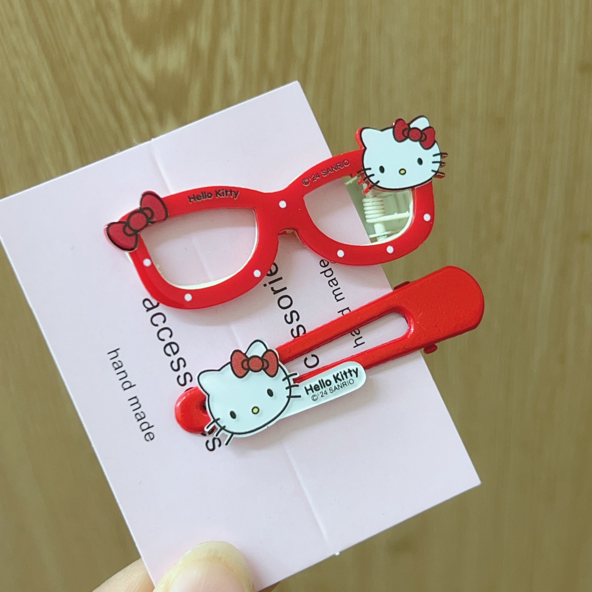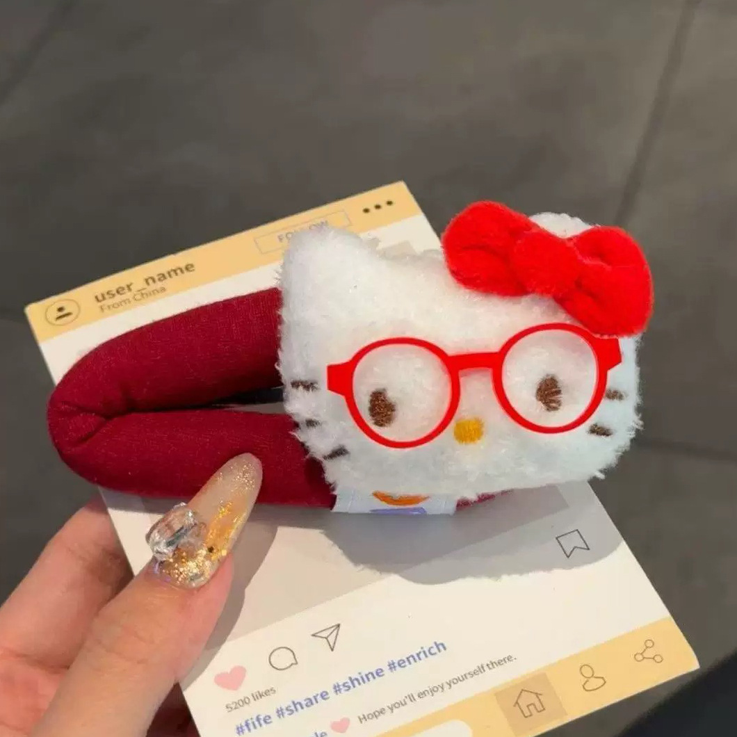 • 빨간 안경을 쓴 고양이 머리핀 한 쌍