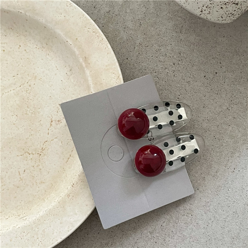 • 13-레드 폴카 도트 진주 한 쌍