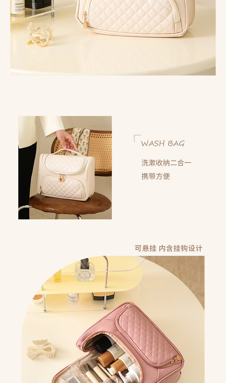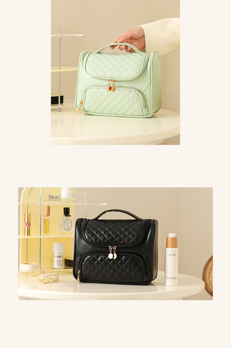 PU 퀼트 휴대용 화장품 가방 대용량 휴대용 방수 습식 및 건식 여행 세면 용품 가방 국경 간 공급 도매스토어 가기