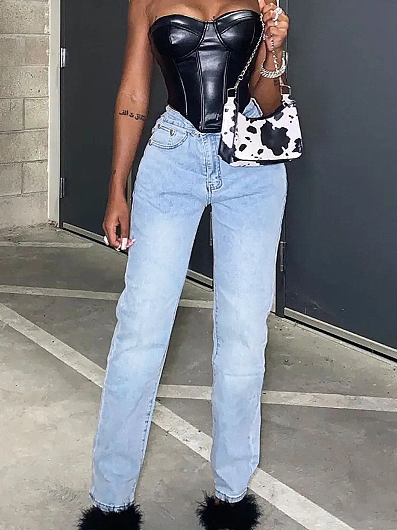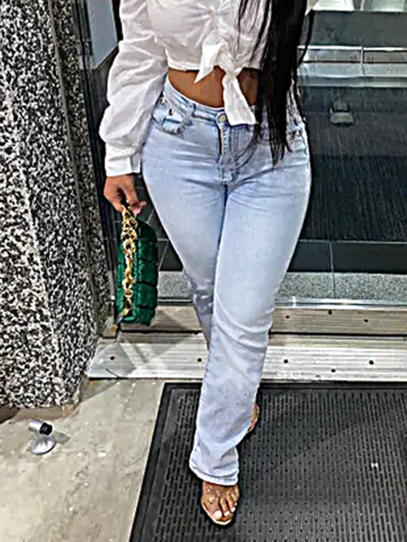 국경 간 대외 무역원 아마존 유럽과 미국 네트 레드 고탄성 캐주얼 청바지 하이 웨이스트 스트레이트 팬츠 공장 콘센트스토어 가기