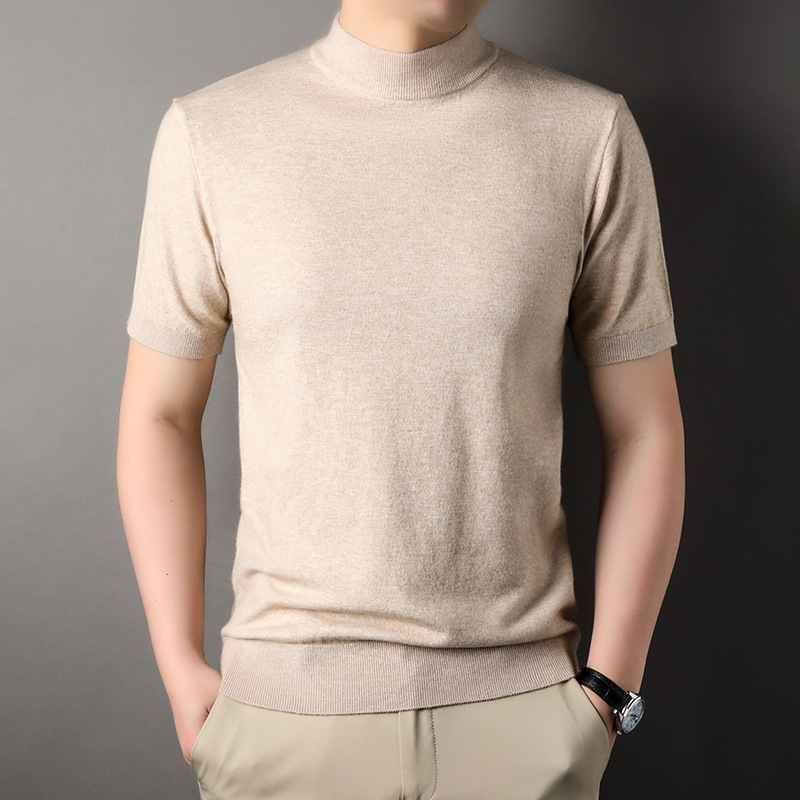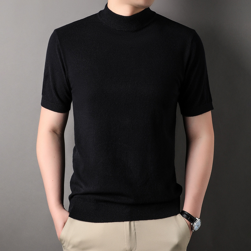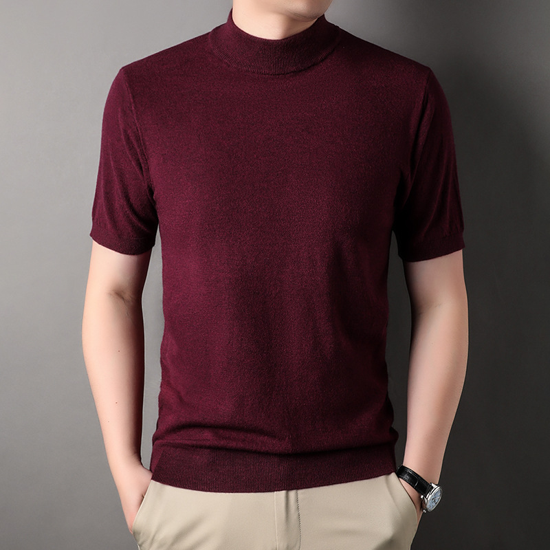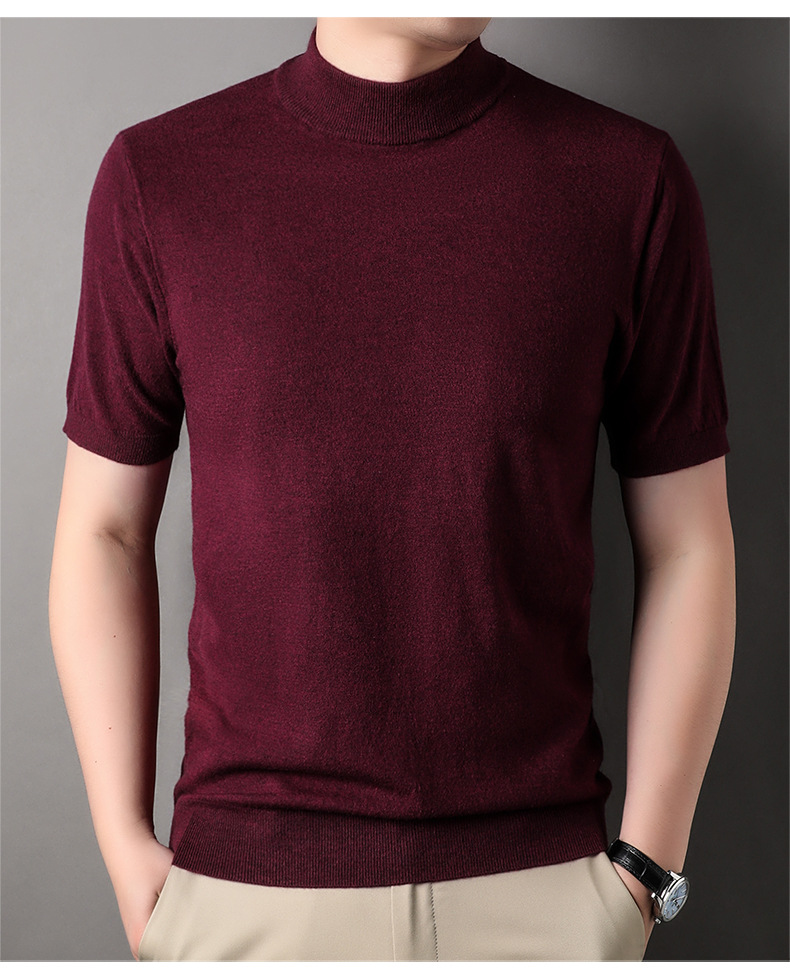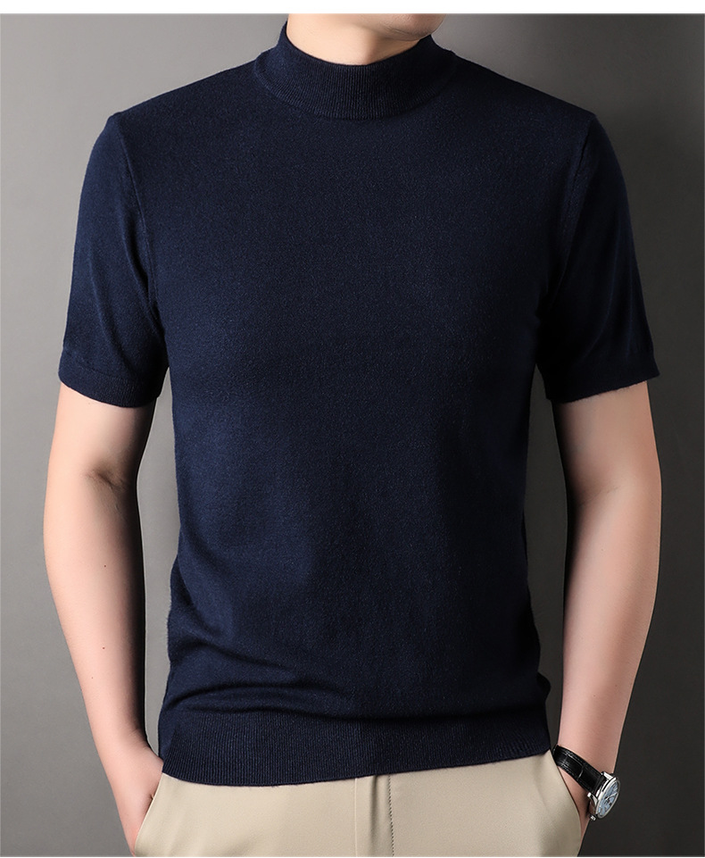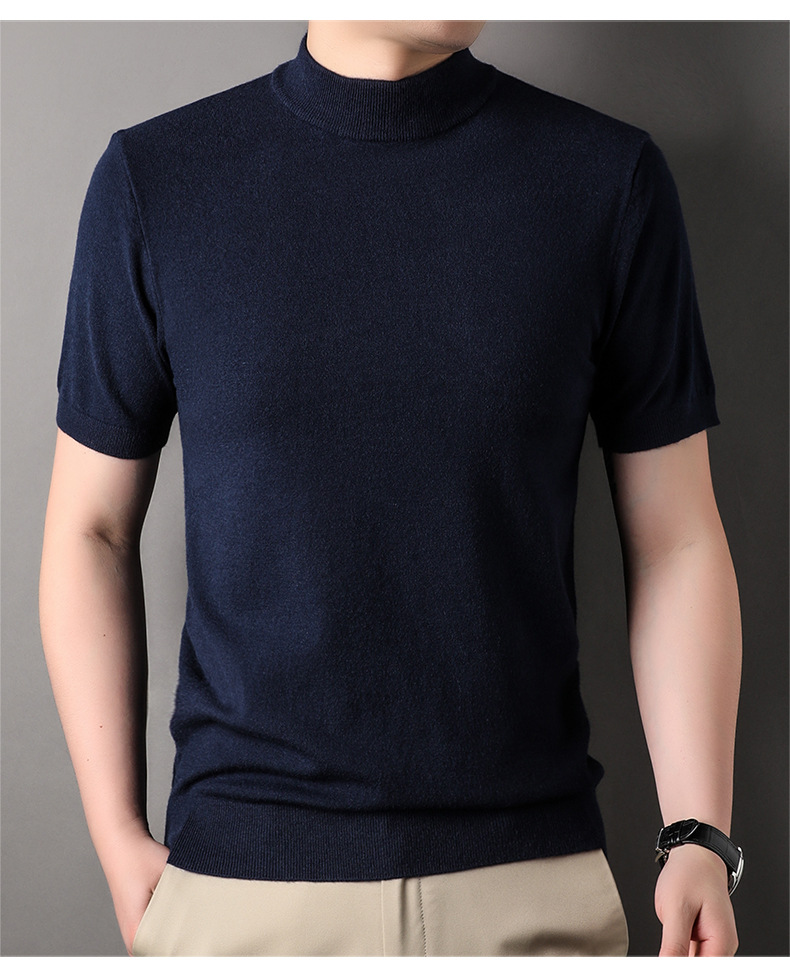 남성용 반팔 모직 스웨터 2025 가을 겨울 새로운 단색 젊은 및 중년 남성용 캐주얼 반팔 터틀넥 스웨터스토어 가기