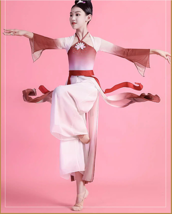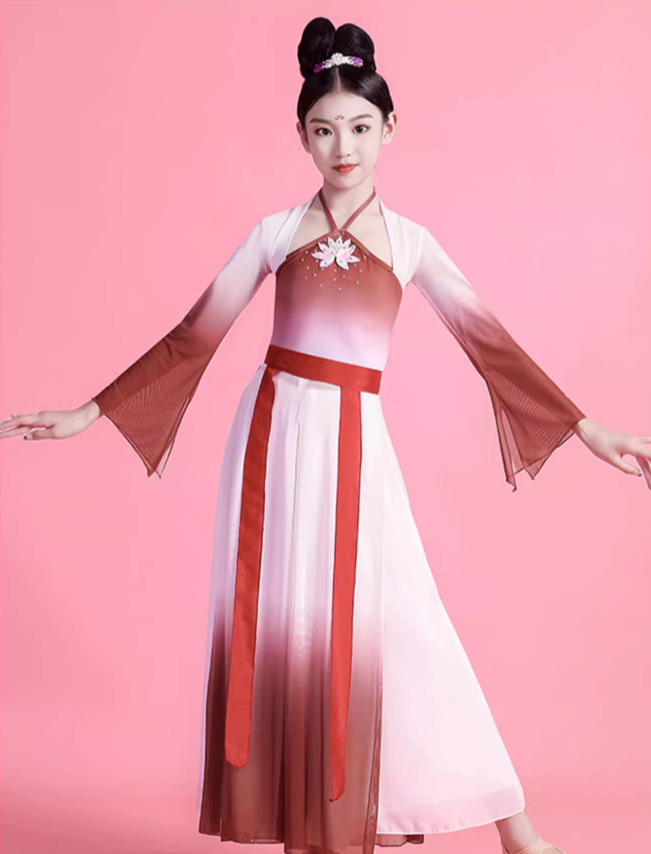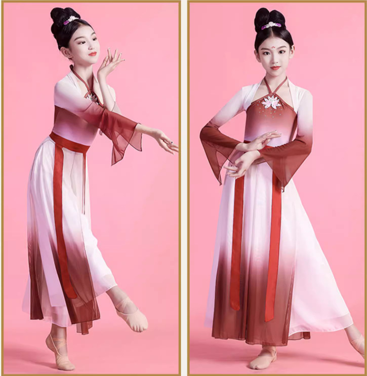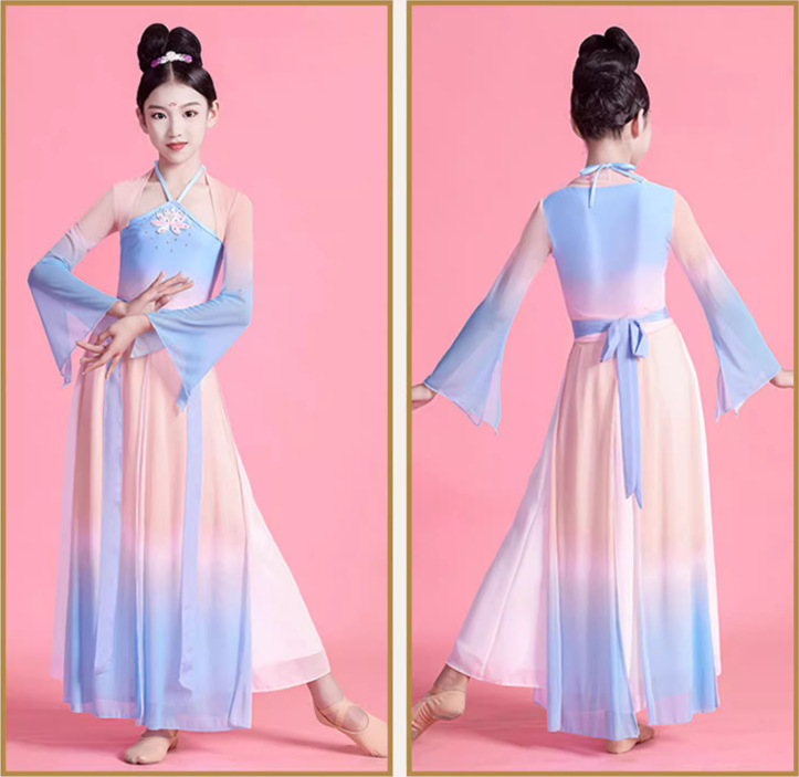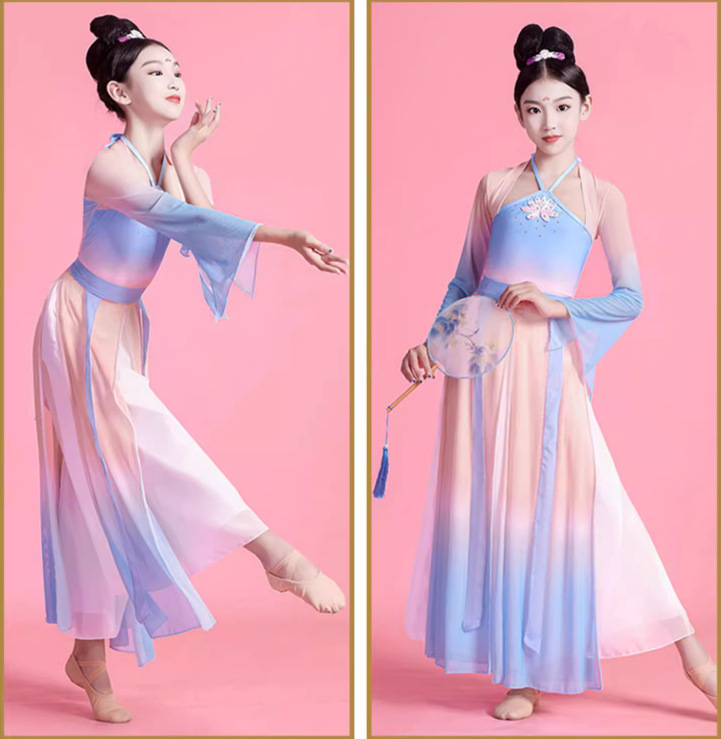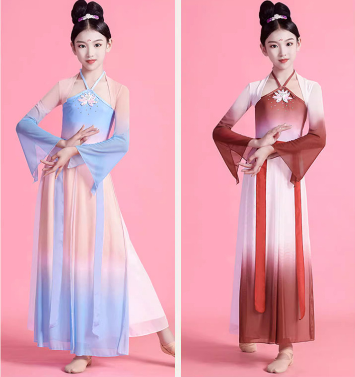 어린이 클래식 댄스 의상 우아한 중국 무용 민족 무용 연습 의상 여아 팬 댄스 골동품 한푸 공연스토어 가기