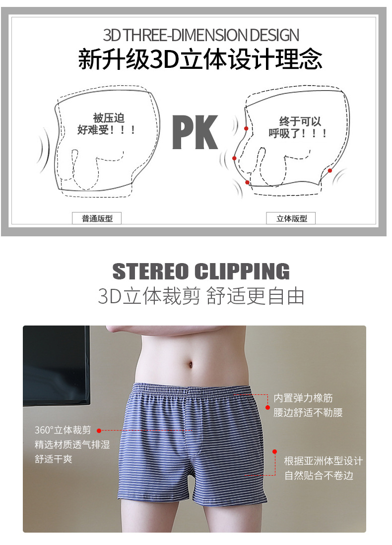 新款男士阿罗裤男款纯棉透气宽松四角内裤头青年条纹平角短裤衩