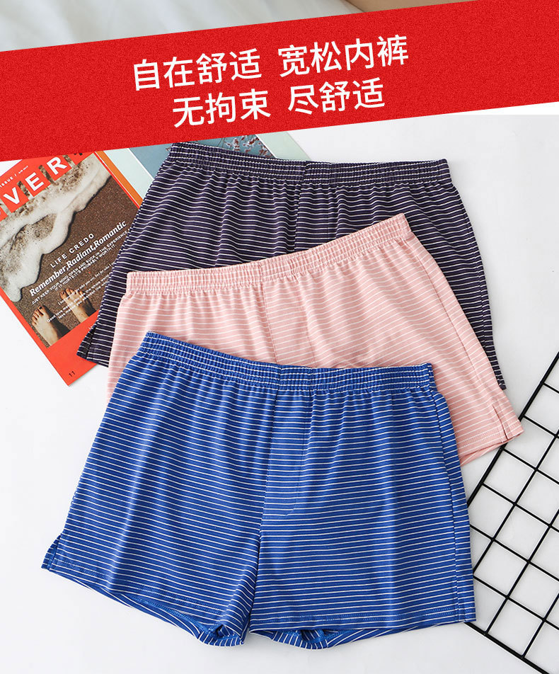 条纹内裤男士纯棉透气宽松阿罗裤男生大码运动四角休闲短裤头潮流