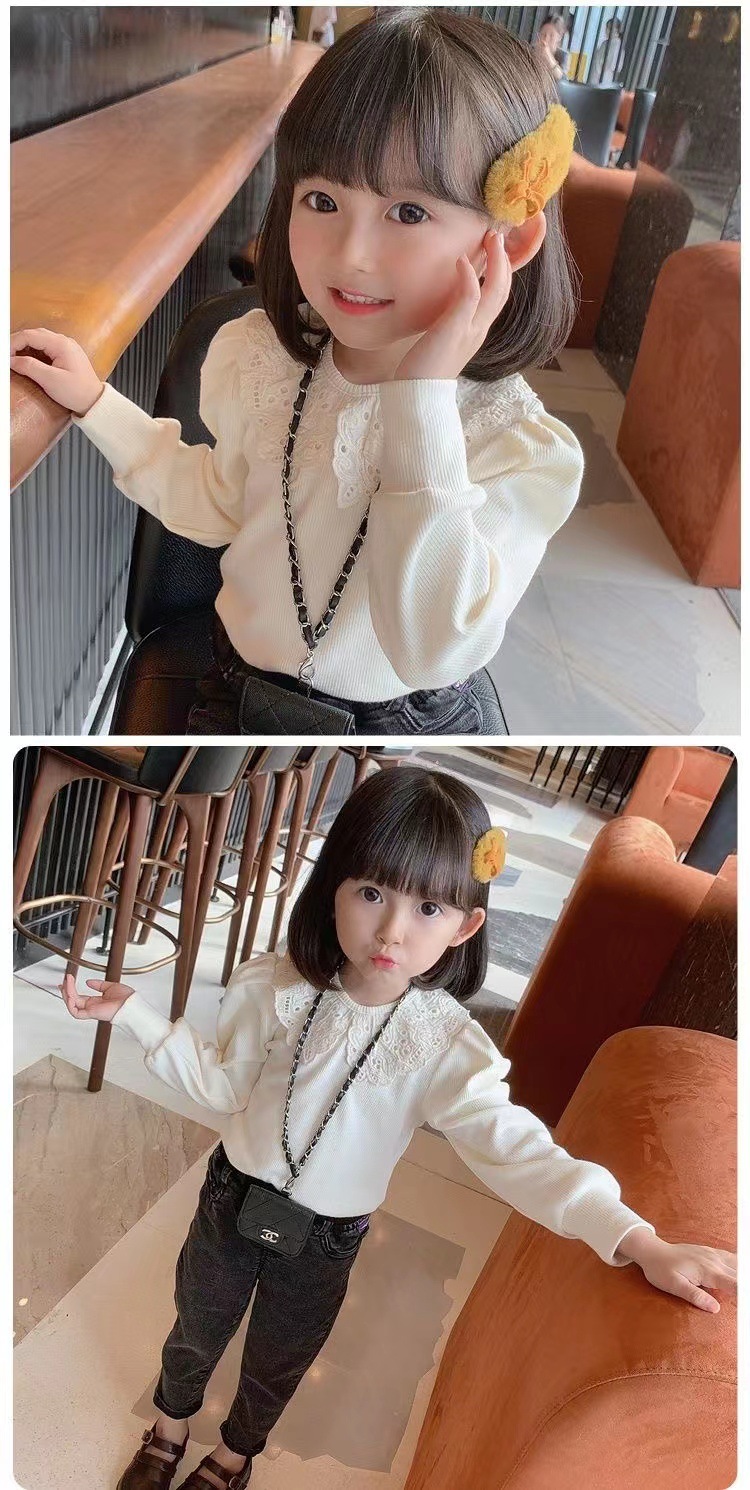 여아 베이스 셔츠 봄 2023 새로운 어린이 인형 칼라 탑 여성용 긴팔 베이스 셔츠 티셔츠