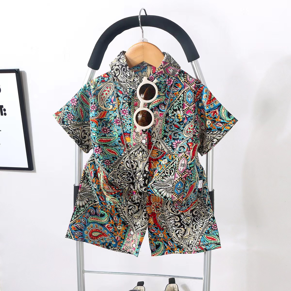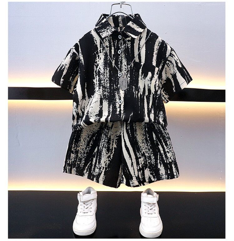 새로운 어린이 여름 스플래시 잉크 카디건 세트 소년의 반소매 셔츠 반바지 세트 여성의 보물 퀵 드레싱 의상스토어 가기