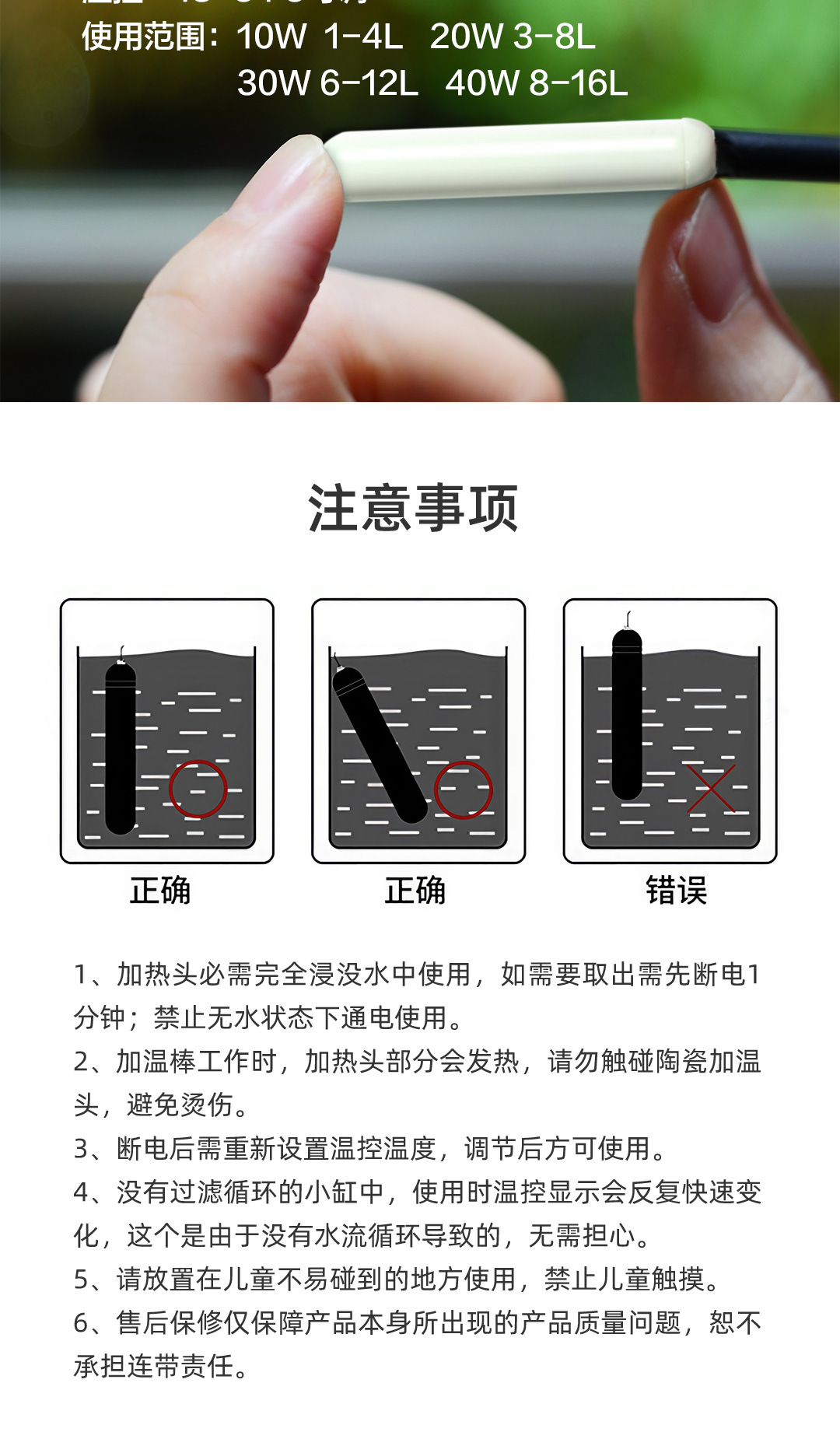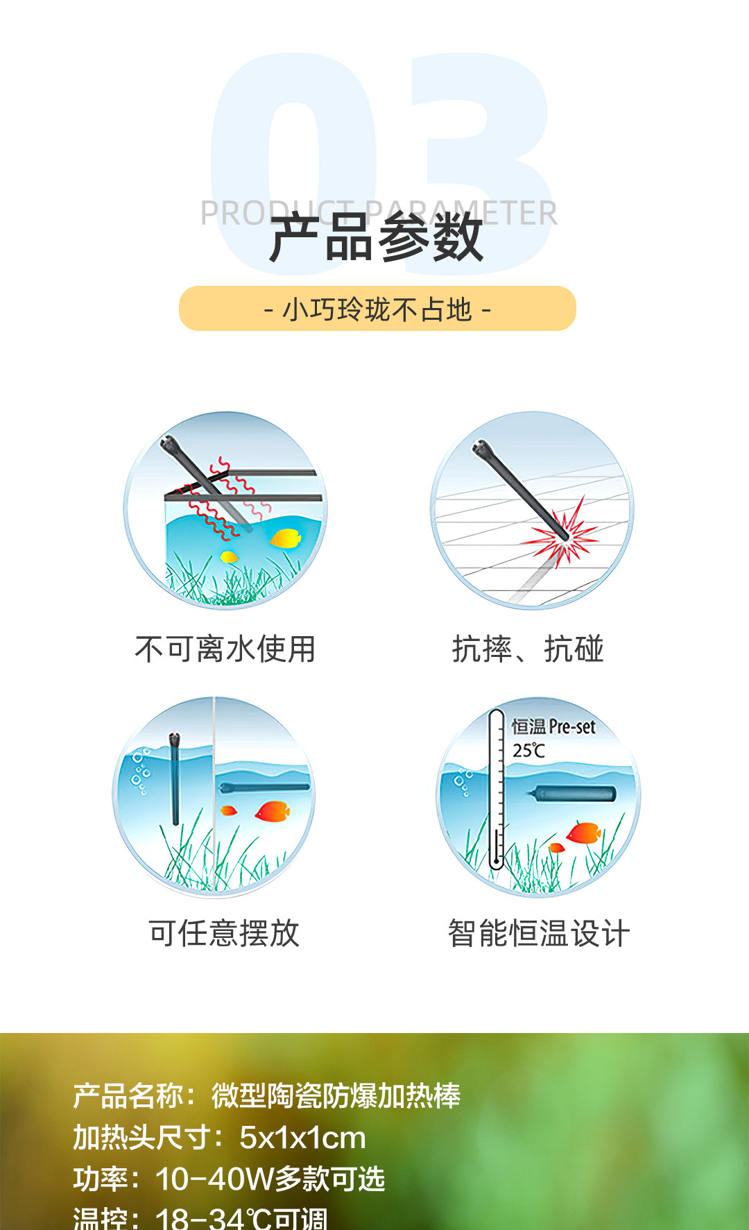 소형 미니 히팅 로드 마이크로 어항 소형 탱크 거북이 탱크 양동이 어항 세라믹 가열 초단주파 자동 일정 온도