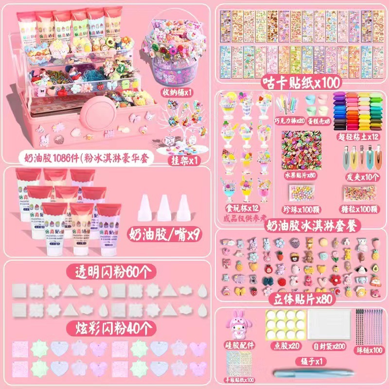 크림 젤 구 카드 세트 DIY 수제 재료 가방 장난감 소녀 스티커 보관 상자 어린이 날 선물
