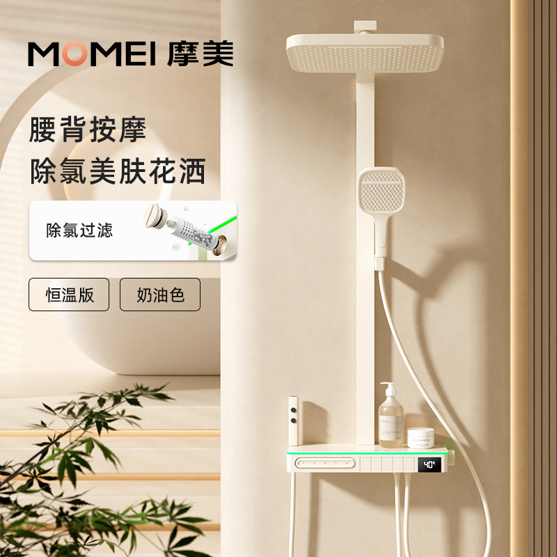 MOMEI MOMEI 우유 흰색 일정 온도 샤워 세트 가정용 욕실 샤워 백 스프레이 염소 제거 분위기 램프스토어 가기