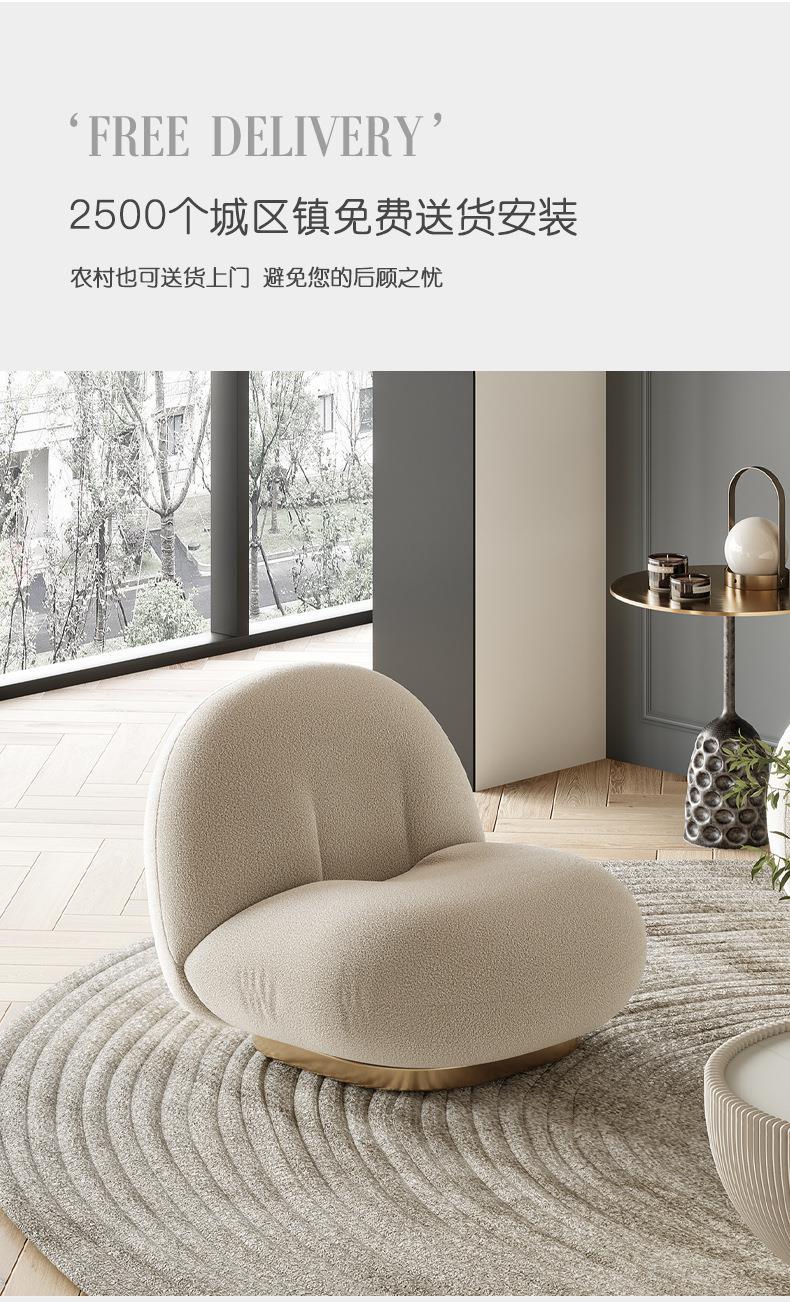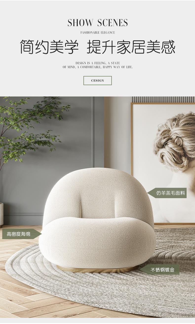북유럽 조명 럭셔리 인터넷 인기 게으른 소파 홈 거실 발코니 캐주얼 스타일 양고기 벨벳 싱글 소파 의자스토어 가기