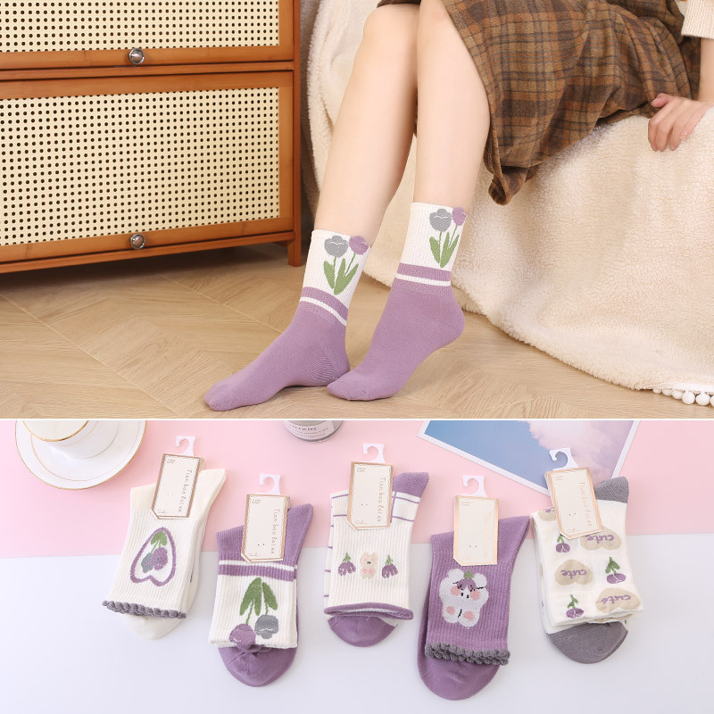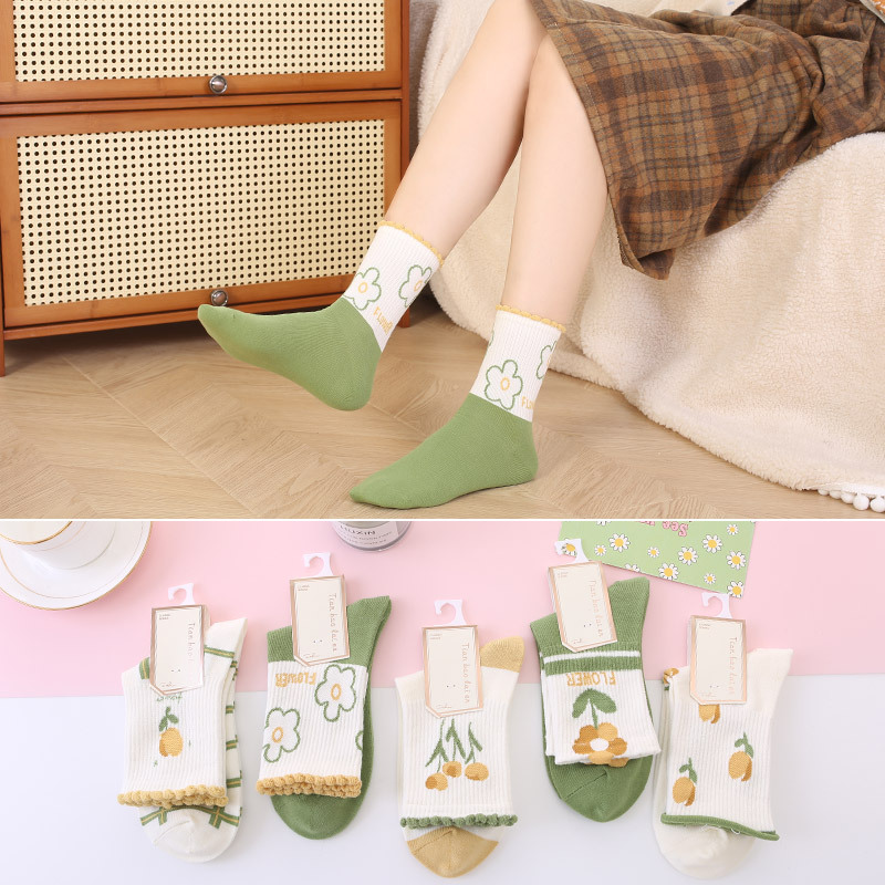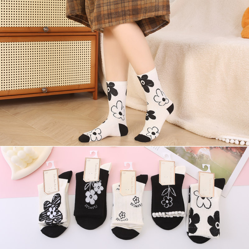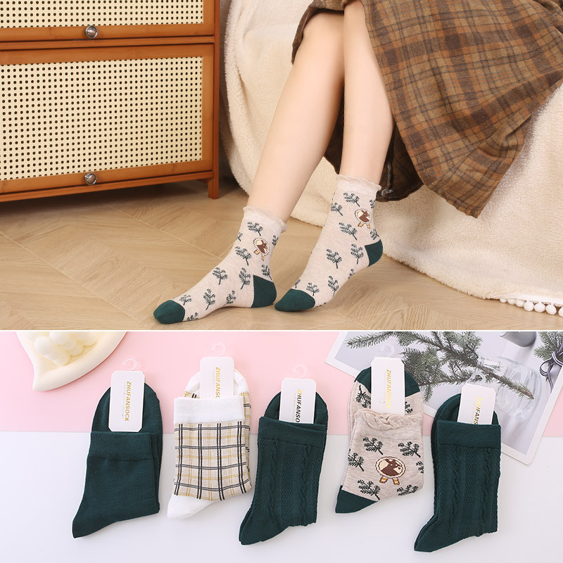 Tianbaolail 소켓 여성 신상 중간 길이 여성용 양말 일본 및 한국 패션 트렌드 면 양말 봄, 가을 따뜻한 면 양말스토어 가기