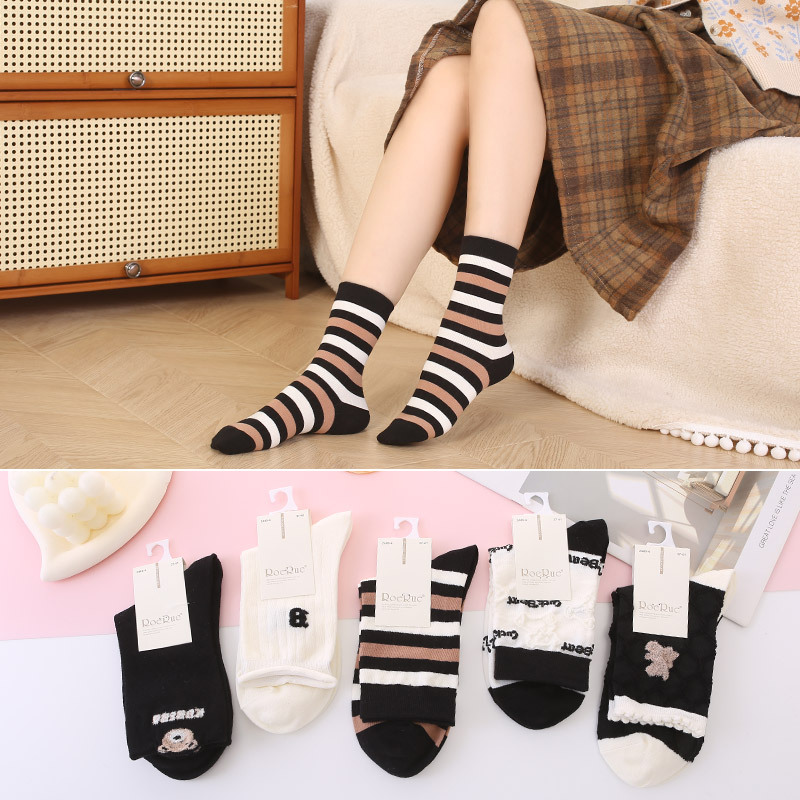 Tianbaolail 소켓 여성 신상 중간 길이 여성용 양말 일본 및 한국 패션 트렌드 면 양말 봄, 가을 따뜻한 면 양말